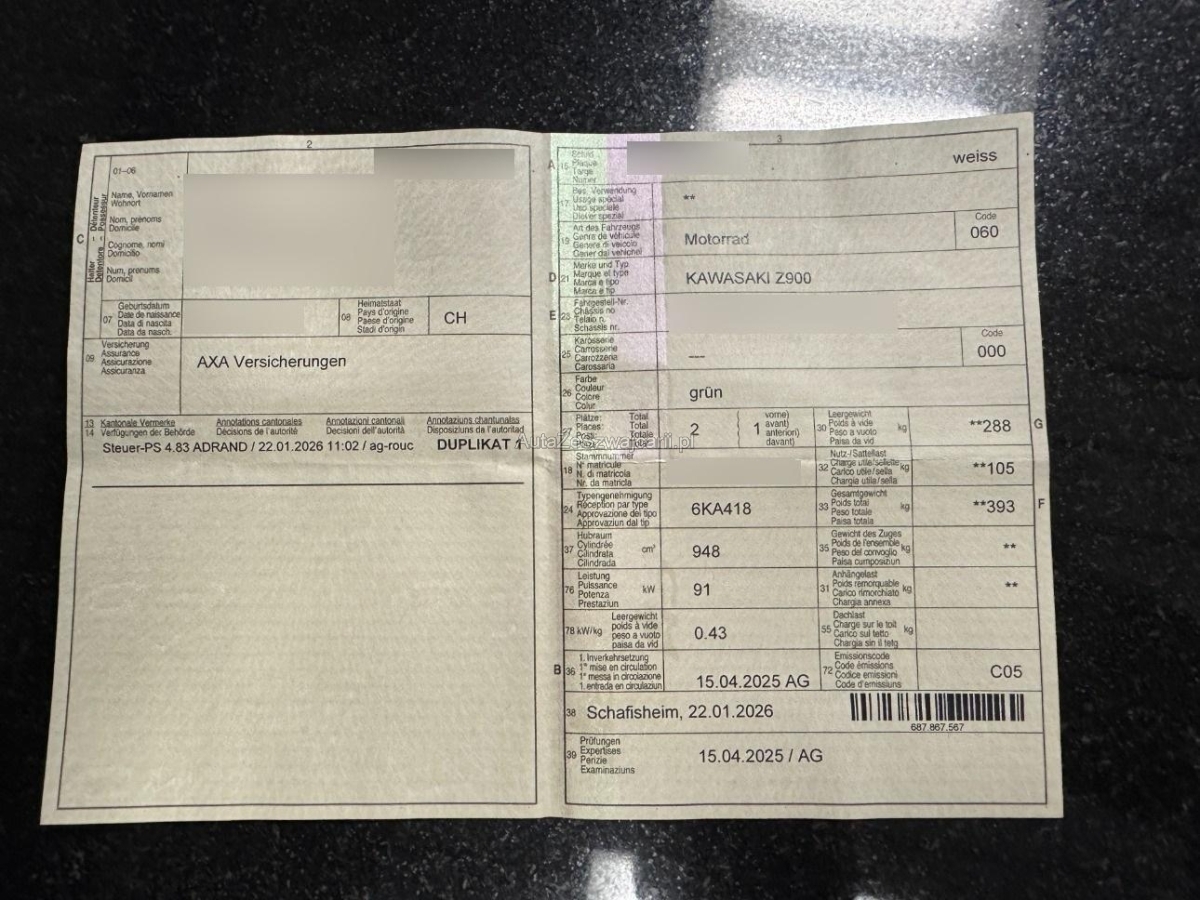 | Fahrzeugausweis | Vorhanden |