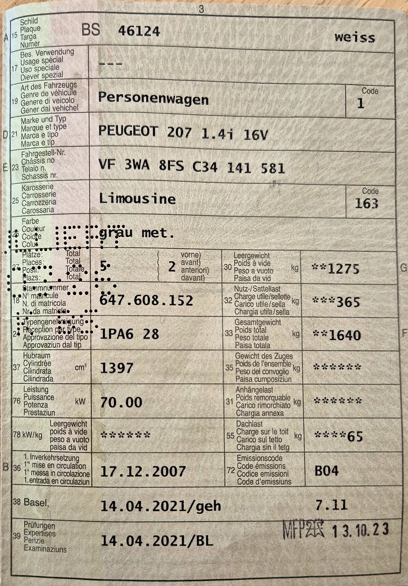 | Letzte Inspektion | 2023-10-01 |