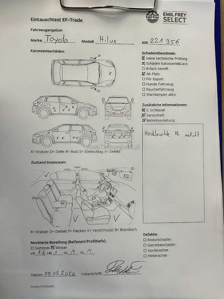 Fahrzeug ab Platz, ohne Garantie und Aufbereitung. Heckleuchte HL undicht