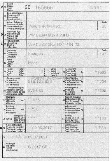 | Typ | Caddy Ma Fo 2.0TDI 102CH DSG |