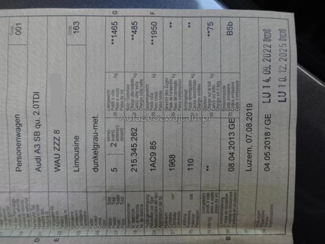 | Condition_and_Equipment | Zustand Fahrzeug ist rollbar. Schlüssel Nur ein Schlüssel vorhanden. Weitere wichtige Hinweise Motor läuft! --- Heck Heck eingedrückt. Heckblech eingedrückt. Heckklappe eingedrückt. Weitere Beschädigungen Stossstange hinten gestaucht, Stossstangenbalken hinten gestaucht Vorschäden: Seitenwand hintern rechts zerkratzt, Stossstange vorne rechts zerkratzt --- Serienaustattung Sportfahrwerk Airbag Fahrer und Beifahrerseite Seitenairbag Fahrer und Beifahrerseite Geteilte Rücksitzlehne 1/3, 2/3 Elektrische Fensterheber vorne ESP/ ASR/ EDS/ ABS mit EBV Sportsitze vorne Seitliches Kopfairbagsystem SIDEGUARD Sport-Lederlenkrad 3-Speichen Fahrerinformationssystem mit Farbdisplay Vordersitze höhenverstellbar Dieselpartikelfilter DPF Servotronic geschwindigkeitsabhängig Leichtmetallräder 17" 5-Arm Design Nebelscheinwerfer vorne Audi drive select (Fahrzeugcharakteristik) Radio/ CD Alu-Optik für Innenraum Details siehe gültige Preisliste des Importeurs Stop + Start System Keine Gewähr auf die Angaben der Serienausstattungen Dekoreinlagen in Aluminium Mistral Komfort Klimaautomatik Sonderausstattung Sitzheizung für Vordersitze Lendenwirbelstützen elektr. für Vordersitze Innenbeleuchtungspaket Mittelarmlehne vorne Aussensp. el. verstellbar/ heizbar/ abblendbar/ anklappbar Scheinwerfer Waschanlage Radschrauben mit Diebstahlsicherung Durchladesystem ohne Skisack S-Line Dachkantenspoiler Dachreling blank Metallic-/ Perleffekt-Lackierung Seitenairbags hinten Vordersitze elektrisch verstellbar Pack Exterieur S-Line Pack Glanz Multifunktions-Ledersportlenkrad 3-Speich.(unten abgeflacht) Fernlichtassistent Parklenkassistent MMI Radio Bang & Olufsen Sound System Bluetooth Schnittstelle Komfortschlüssel Anfahrassistent Audi pre sense basic Navigationsmodul Rückfahrkamera Pack Assistenz Audi Side Assist + Audi Active Lane Assist Leichtmetallräder 18" 5-Arm Rotor Design Raucher- Ausführung/ Handy-/Schlüsselhalter Audi connect |