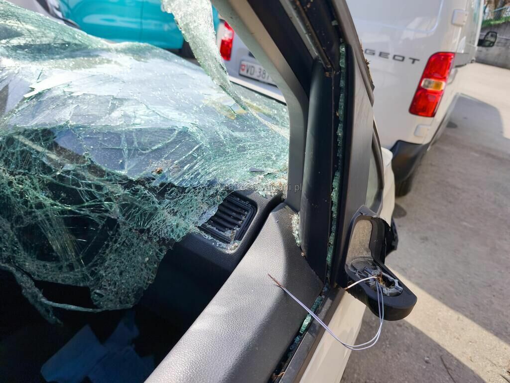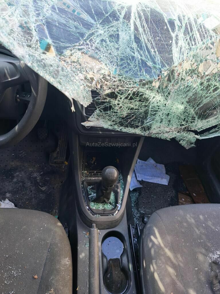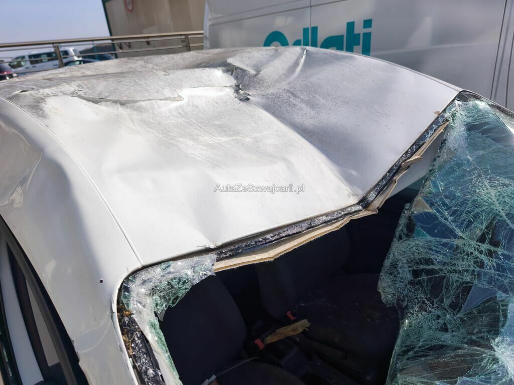 Totalité de la carrosserie endommagée, pare-brise, tableau de bord, pare-chocs avant, phare avant droite, etc...