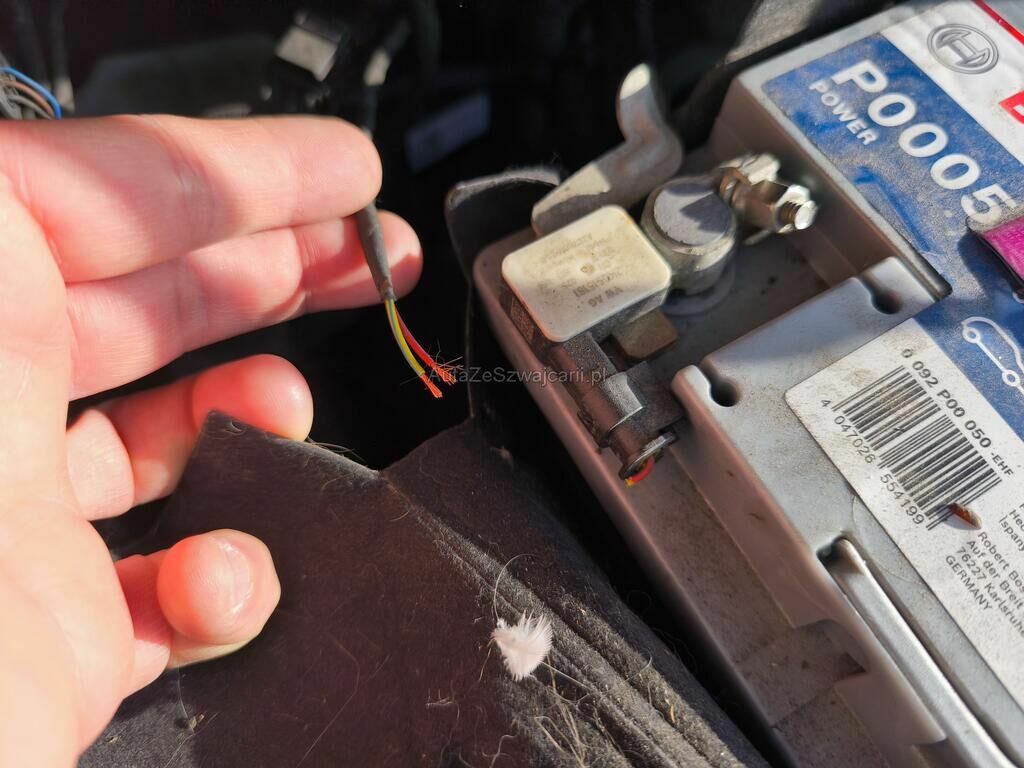 Roue arrière droite, câblage de la batterie