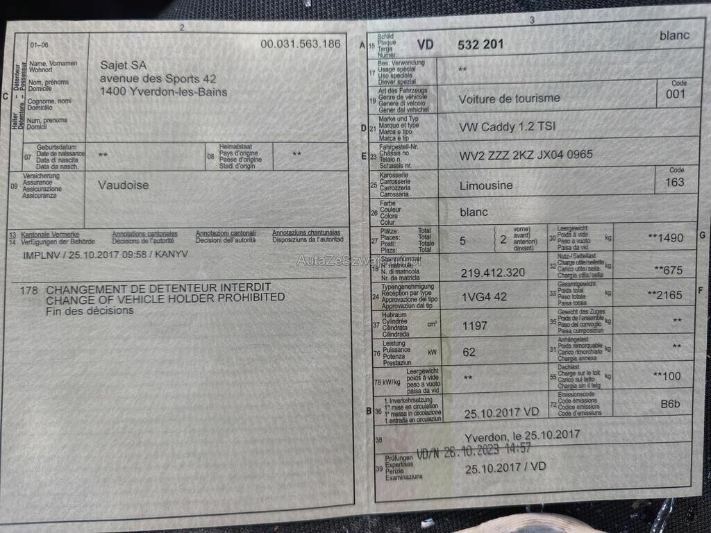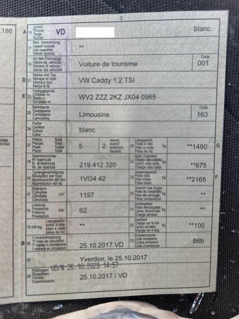| Typ | Caddy 1.2 TSI Entr |