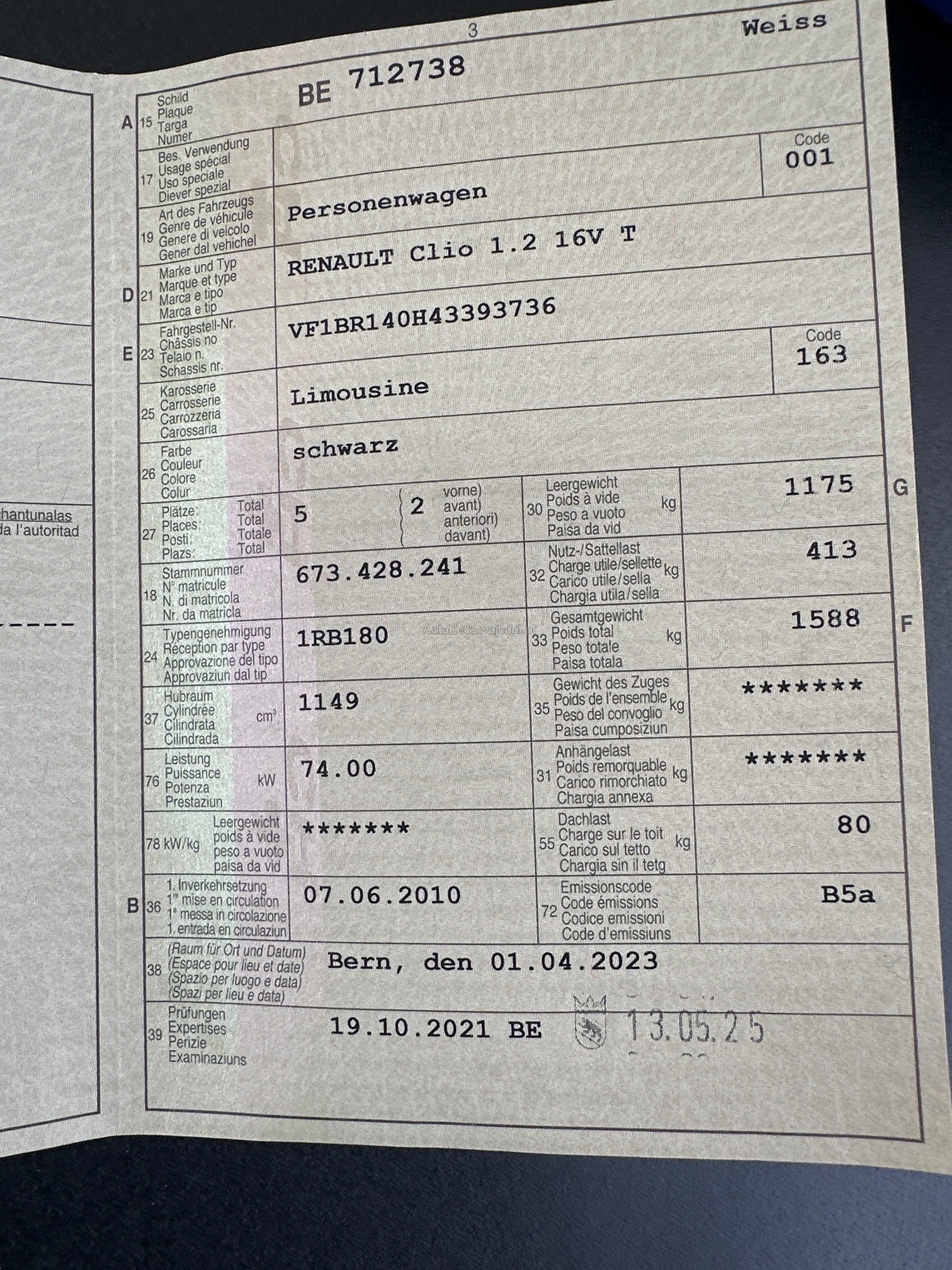 | Kommentar | Diverse kleine Kratzen an der Carrosserie. Beim Fahrzeug wurde kein Werkstatt Test gemacht. |