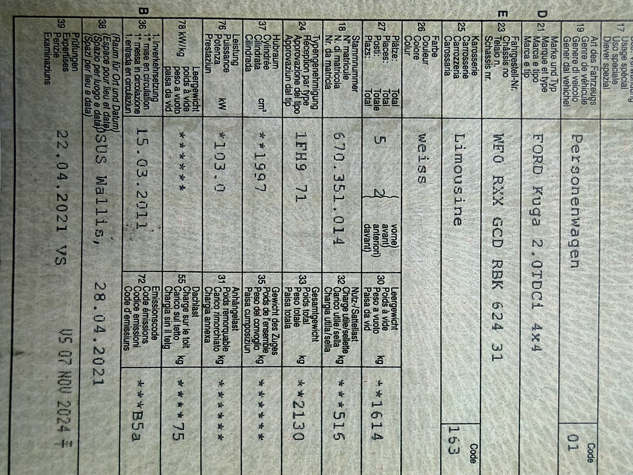 | VIN | WF0XXX |