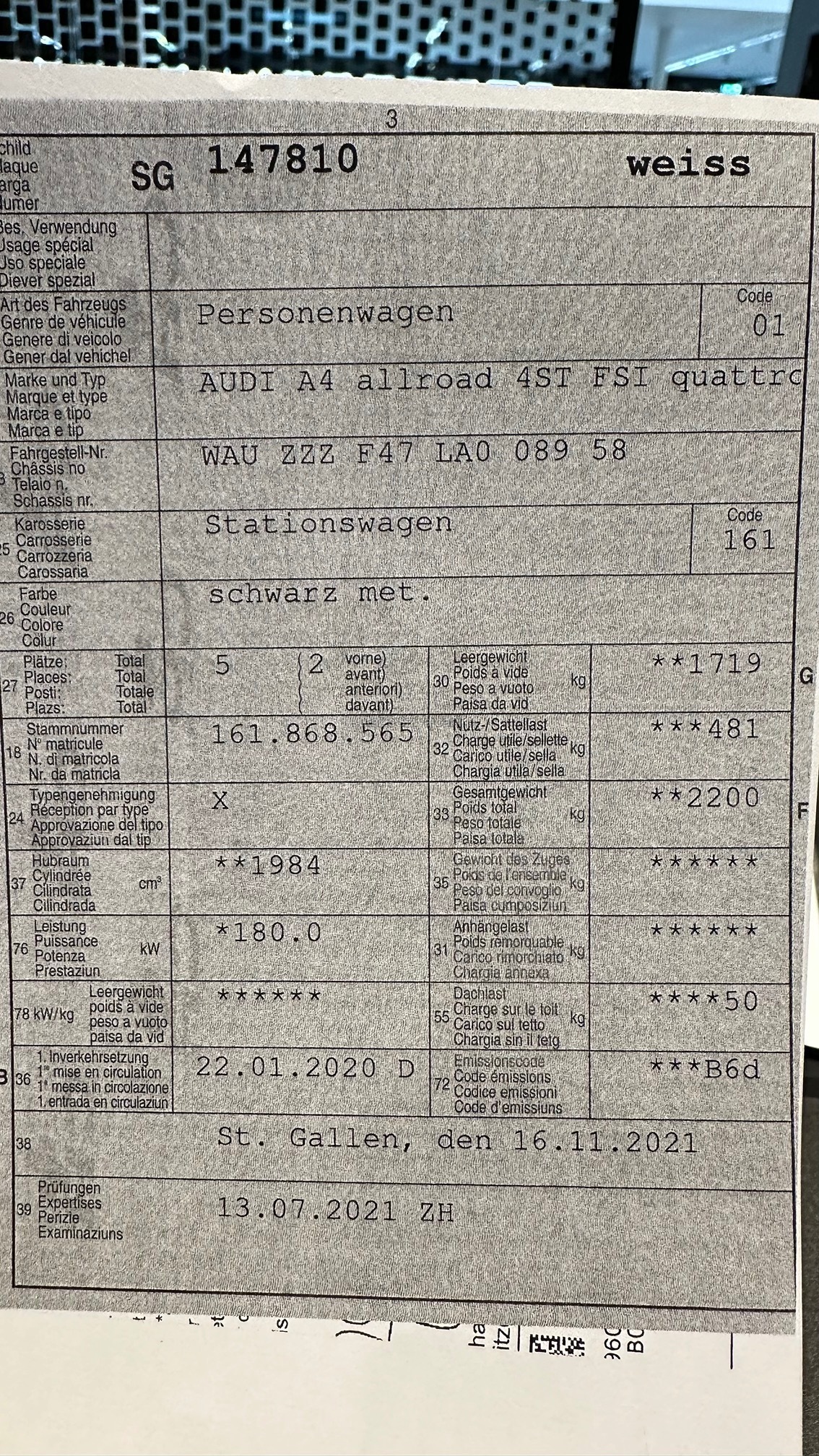 | Außenfarbe | schwarz mét. |