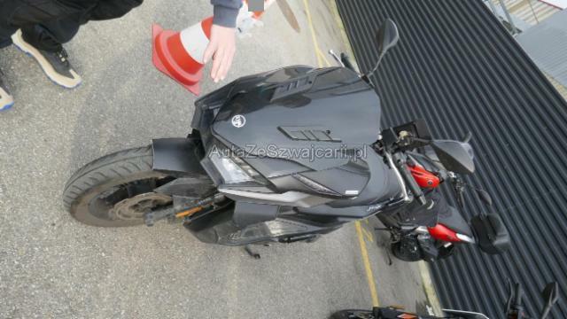 | Condition_and_Equipment | Schlüssel Nur ein Schlüssel vorhanden. Zweirad-Kategorie Roller Weitere wichtige Hinweise Nur ein Schlüssel. Kein Wartungsheft, keine Garantie. --- Rechts Rechte Seite beschädigt. Ist auf die rechte Seite gefallen. Front Schutzblech vorne defekt. Vorderrad beschädigt. Gabel beschädigt. Lenker verbogen. Heck Verschalung hinten verkratzt. Weitere Beschädigungen Frontalaufprall und Sturz rechts: Vordere Felge und Bremsscheibe verbogen, Gabel, Gabel-T-Stück und Lager verformt, beschädigt. Kotflügel vorne, Verkleidung vorne rechts, Luftblase, Lenker, Lenkerspitze, rechter Hebel, rechter Rückspiegel, Unterteil rechts, Unterteil rechts, Keil rechts, Tritt rechts, Heckverkleidung rechts, Heckgriff hinten, Kühlergrill und Auspuffschutz sind zerkratzt, gerissen, gebrochen, beschädigt. Gefahr am Rahmen. --- Ausstattung Leichtmetall-Felgen Metallic-Lackierung |