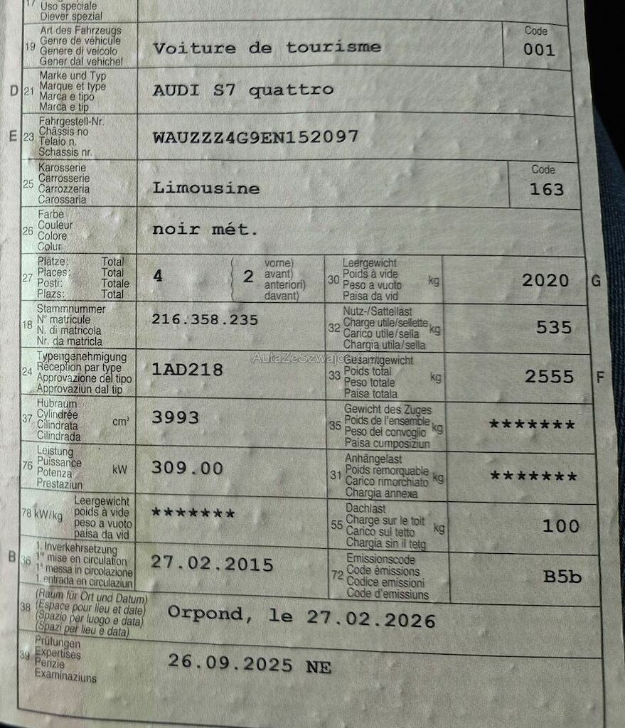 | Typ | S7 Sportback 4.0 TFSI quattro |