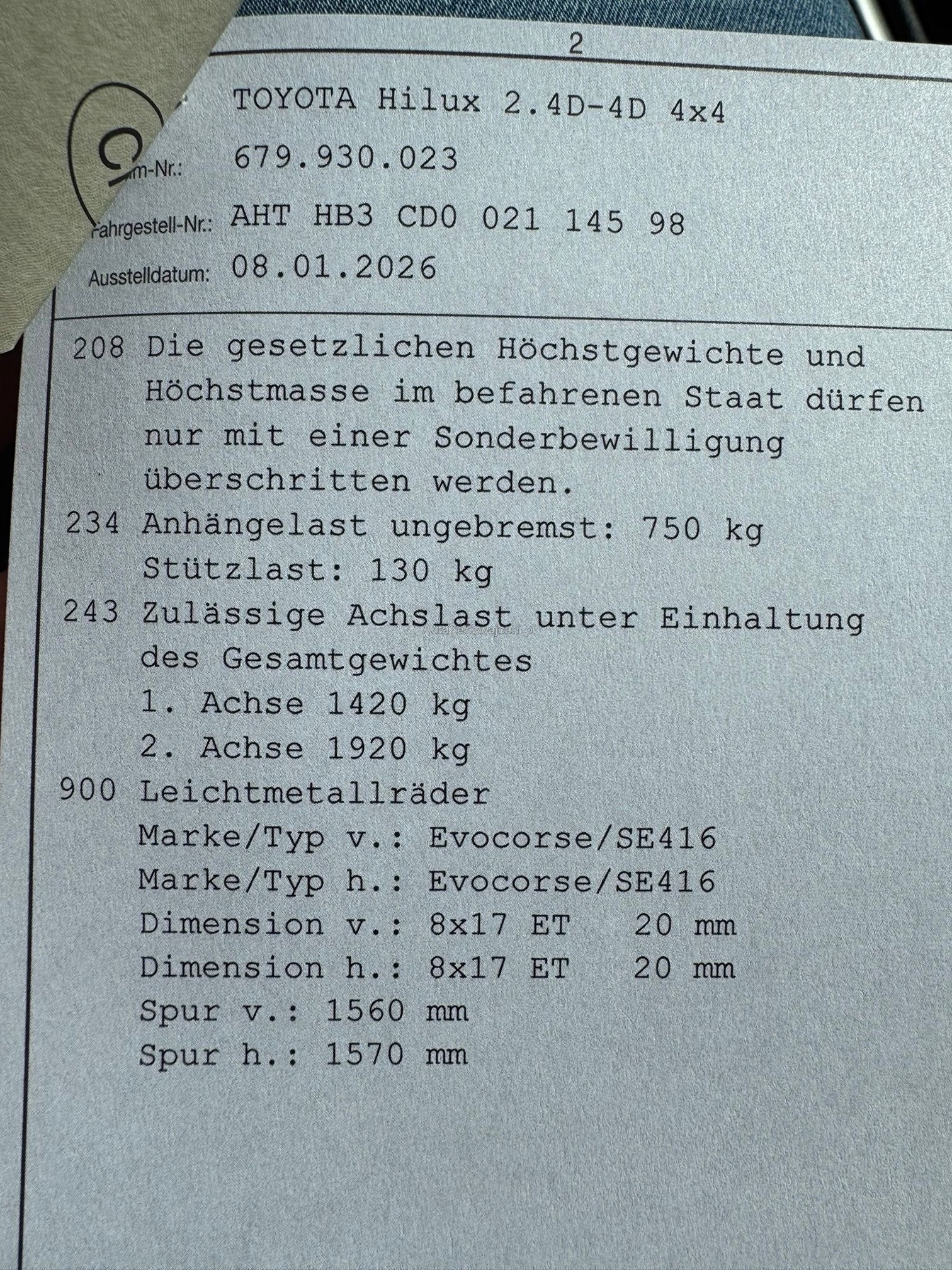 | Rost am Fahrzeug | No |