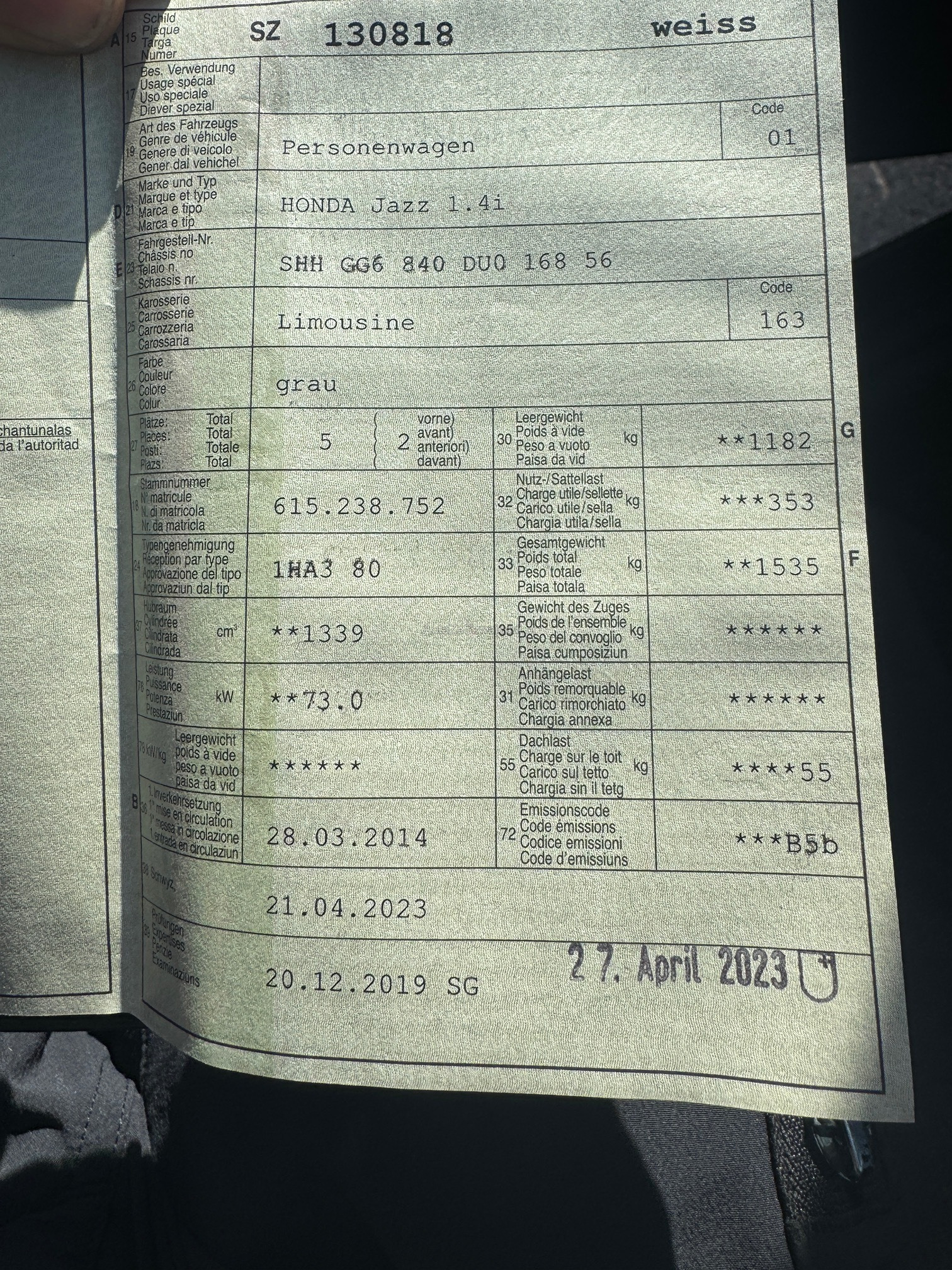 | Letzte Inspektion | 2023-04-01 |