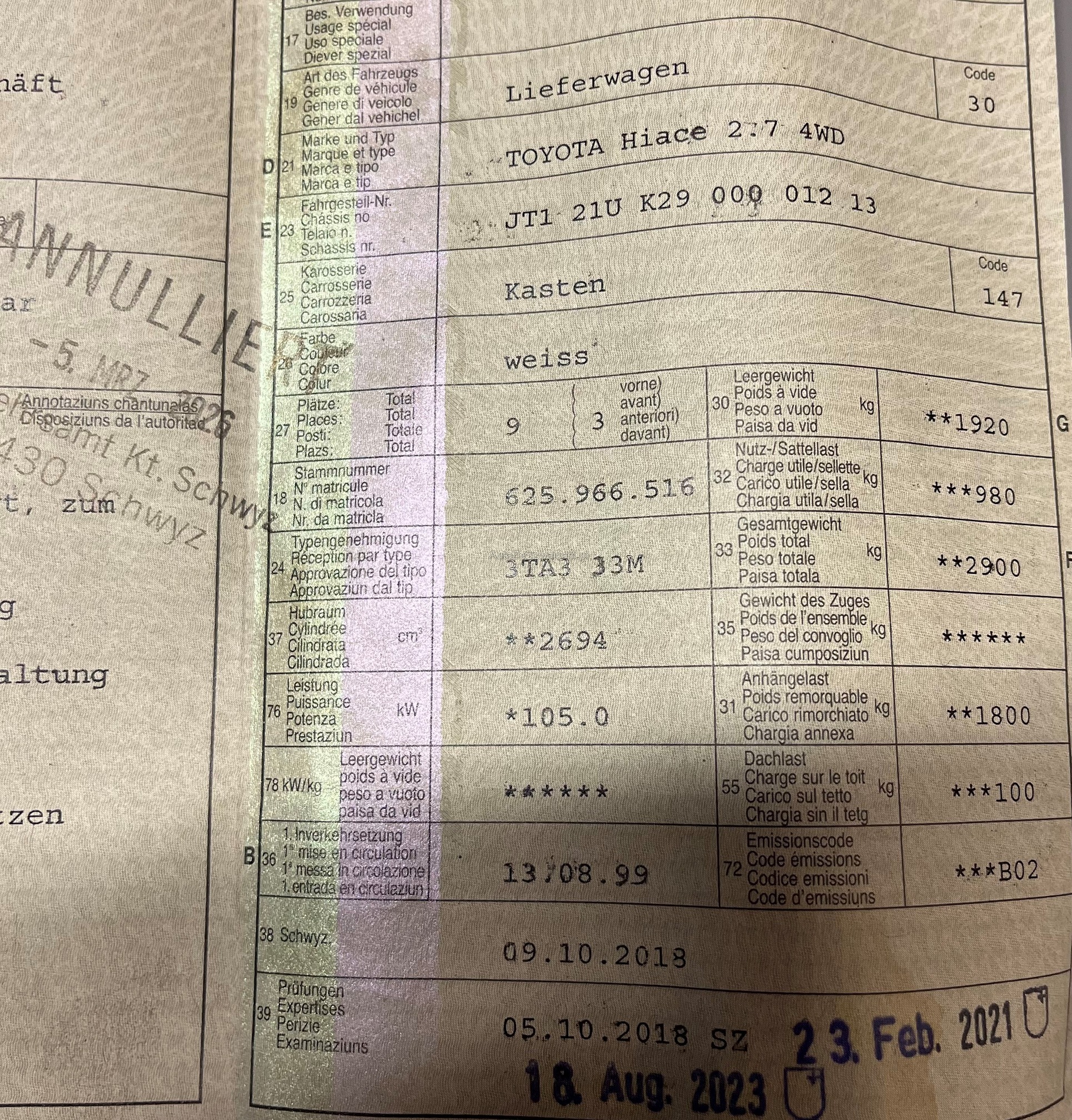 | Kommentar | Gebrauchter Handwerkerbus, Zustand gemäss Fotos, soweit fahrbar ohne bekannte Mängel Wurde bis zum annulieren gefahren Kein Werkstatttest gemacht, keine Garantie und keine Nachverhandlungen bei weiteren Mängeln! |