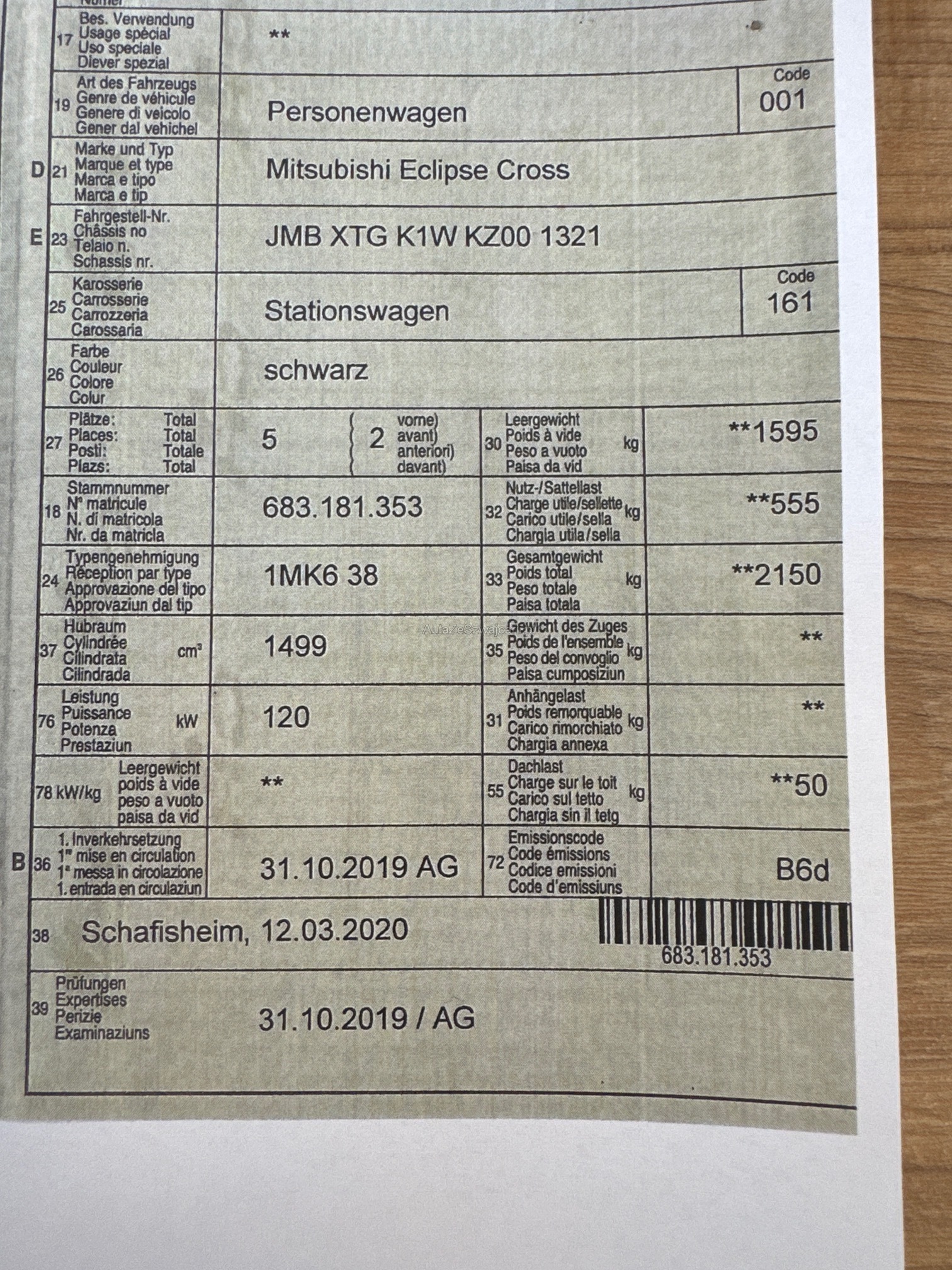 | Letzte Inspektion | 2019-10-01 |