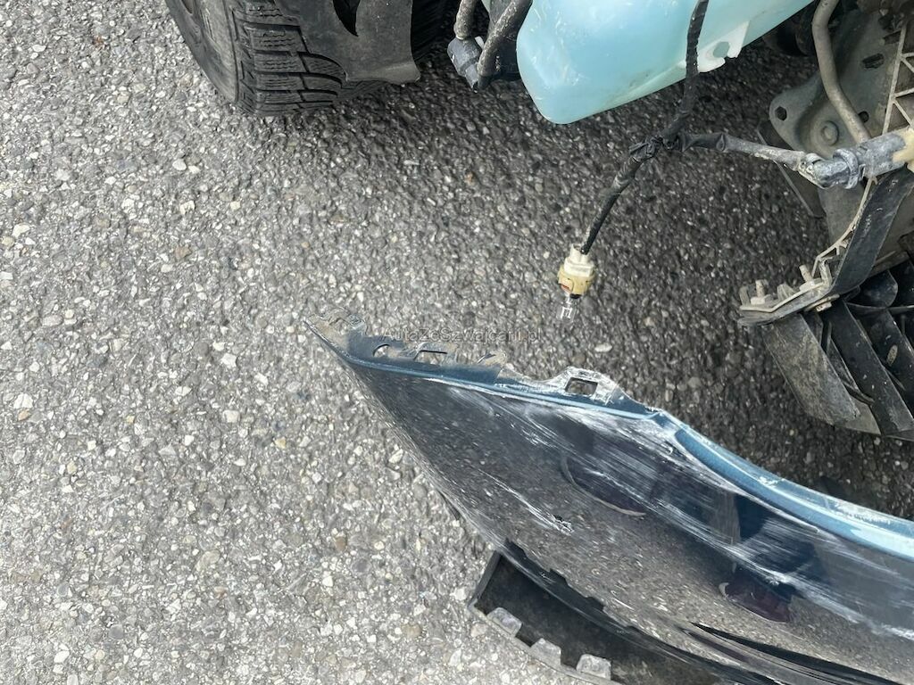 Pare-chocs, aile, phare, capot, renfort et avertisseur endommagés.
