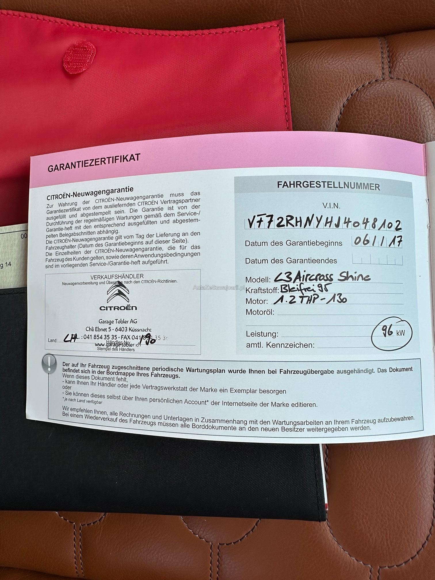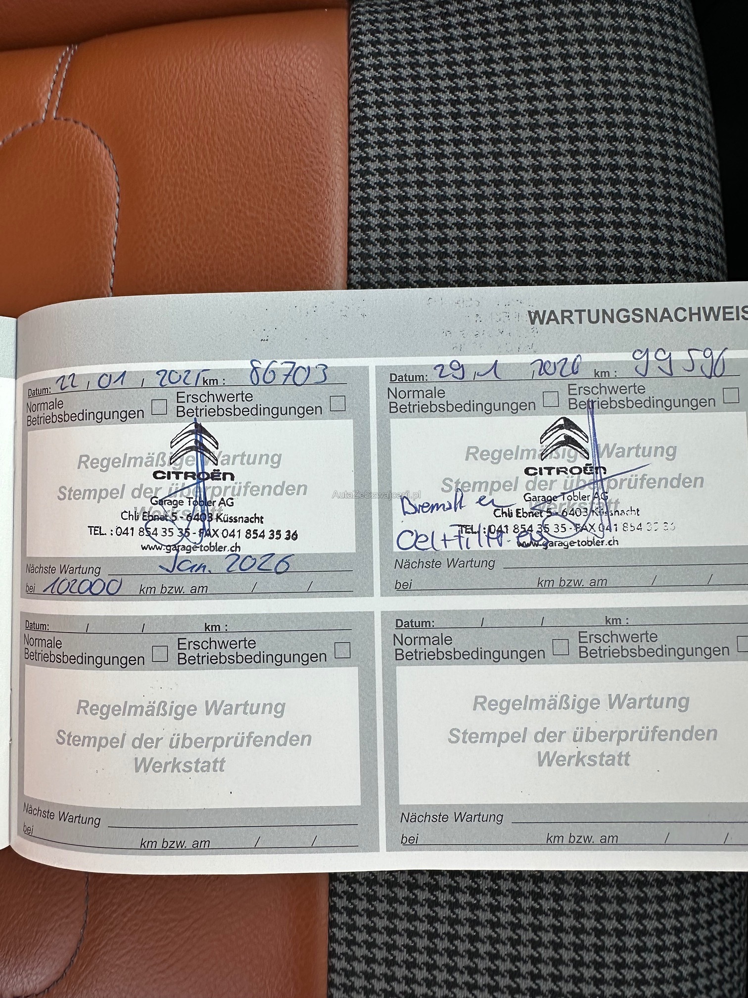 | Kommentar | keine Werkstatt Prüfung gemacht / Eintausch auf Neuwagen / KM Stand +/- Kunde fährt / Scheinwerfer vorne Links hat einen Sprung / letzter Service 01.2026 km 99‘600 |