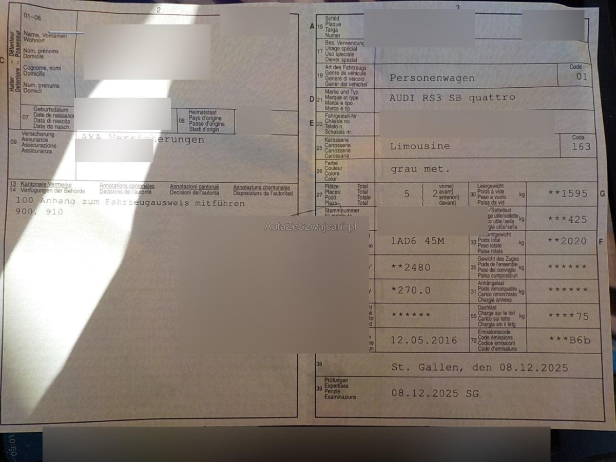| Fahrzeugausweis | Vorhanden |