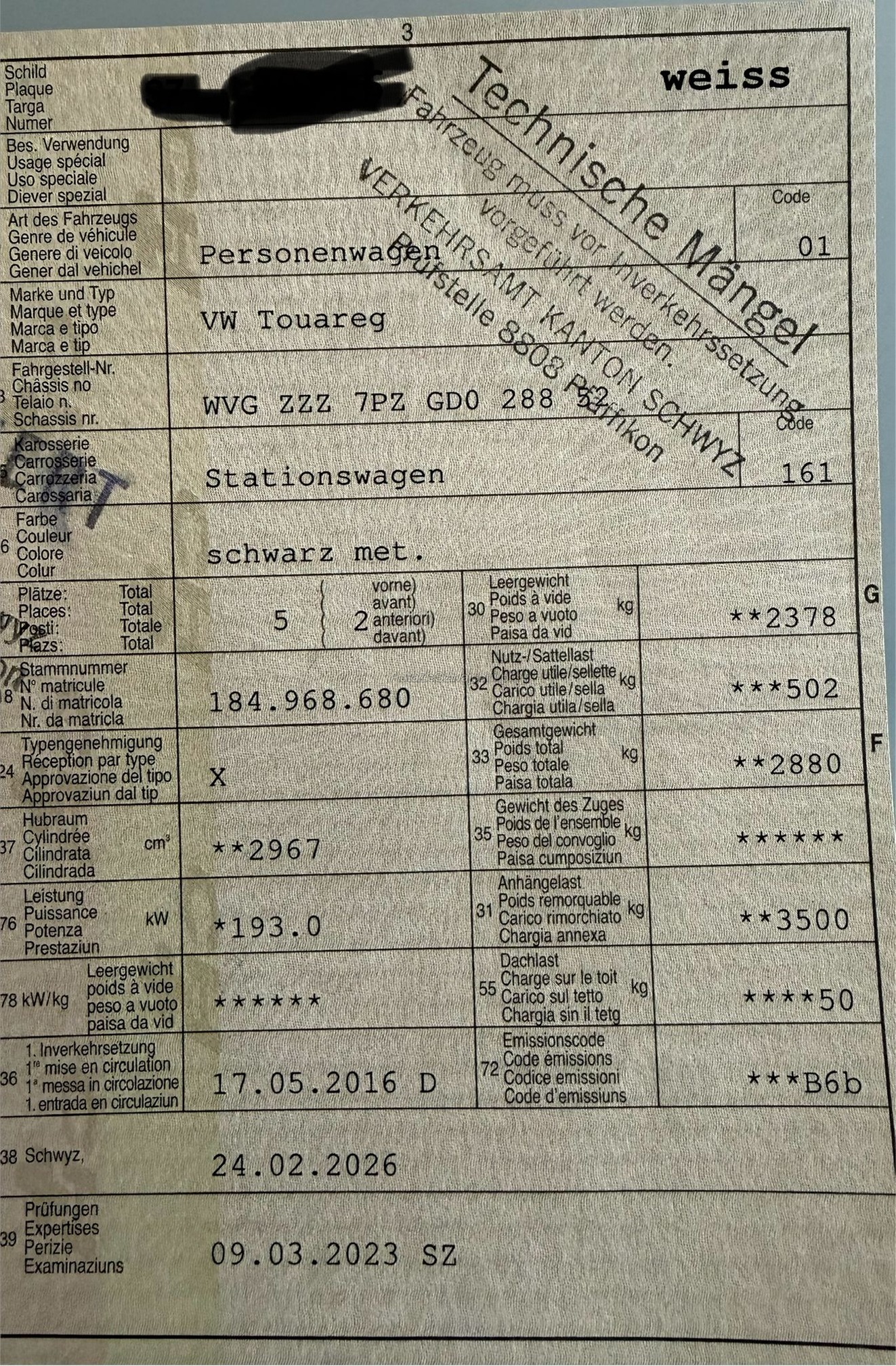 | Kommentar | Technische Mängel wegen DPF. Am Fahrzeug wurde kein Werkstatttest gemacht (Für sichtbare oder nicht sichtbare Mängel wird nicht gehaftet). Wir testen & kontrollieren nicht alle Funktionen vom Fahrzeug. Das Risiko liegt somit vollumfänglich beim Käufer. Nachdem der Höchstbietende den Zuschlag erhalten hat, gibt es keine Nachverhandlung, auch wenn nicht deklarierte Mängel zum Vorschein kommen sollten. Ab Platz ohne Garantie, Wandelung und Minderung werden wegbedungen. |