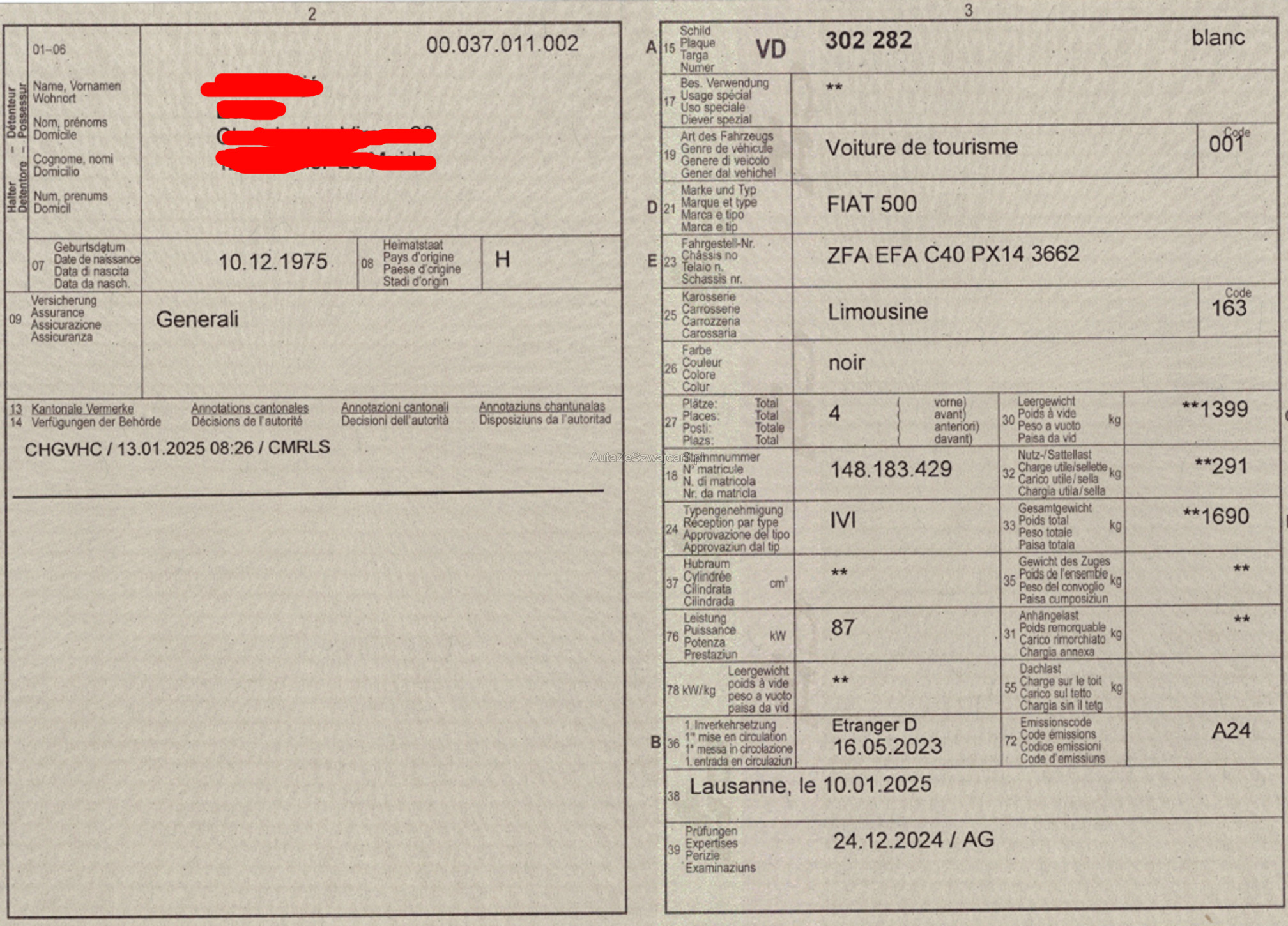 | Kommentar | Import-Fahrzeug aus DE Unsere Garage hat das Fahrzeug nicht gesehen, somit auch keinen Test gemacht. Laut Kunde keine Schäden. Mit Gebrauchsspuren rechnen. Wandelung und Minderung sind ausgeschlossen. |