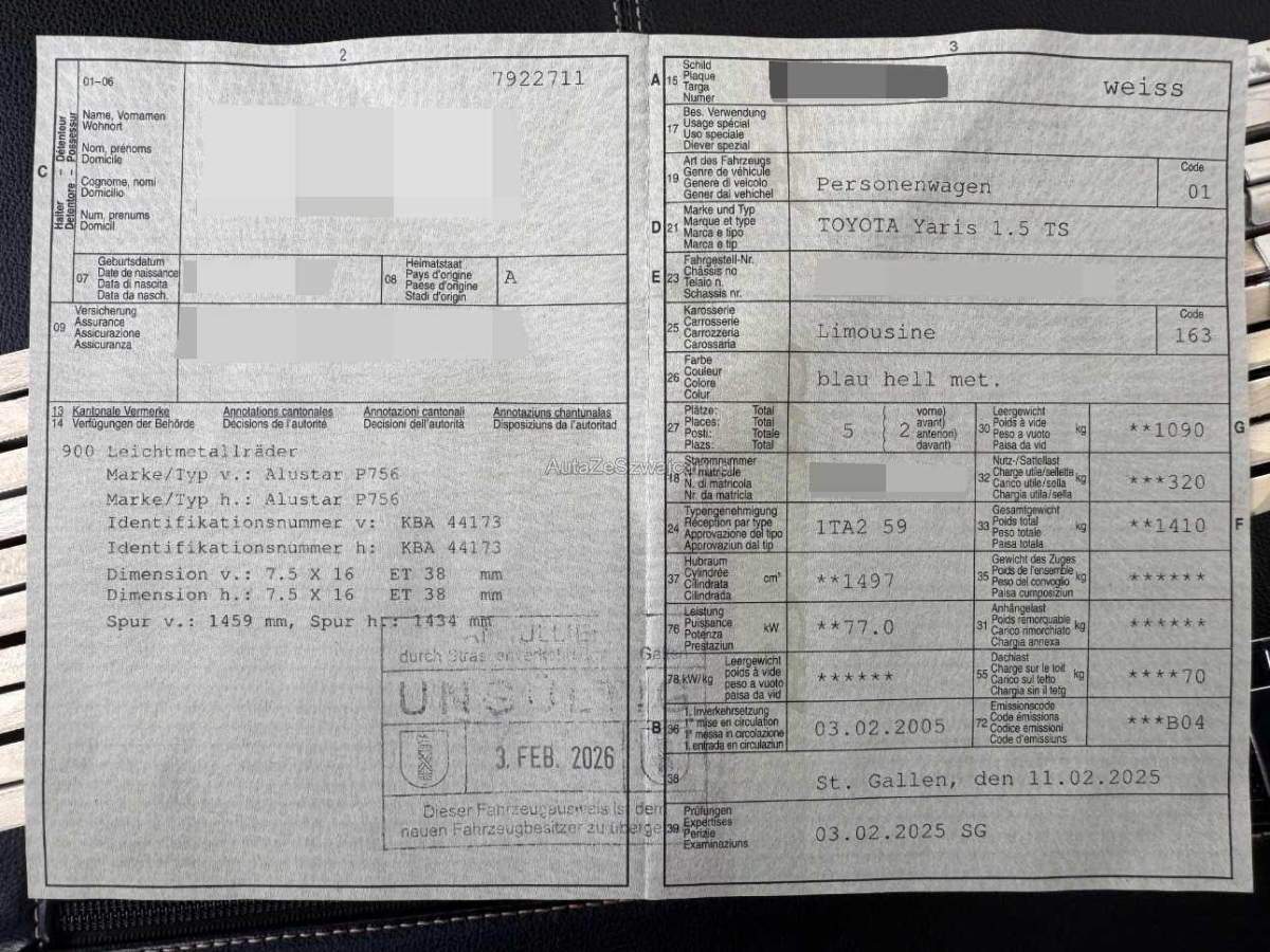 | Fahrzeugausweis | Vorhanden |