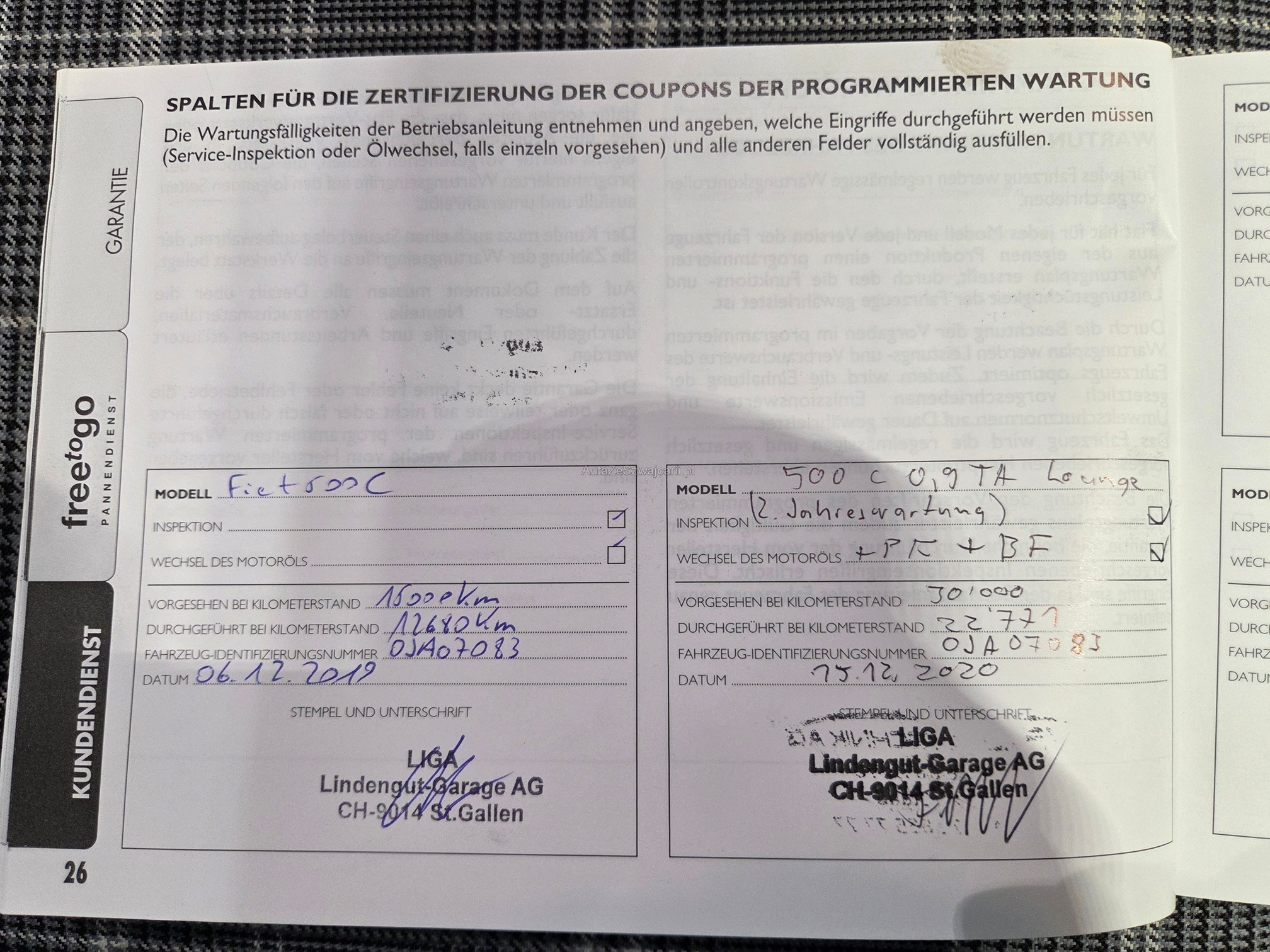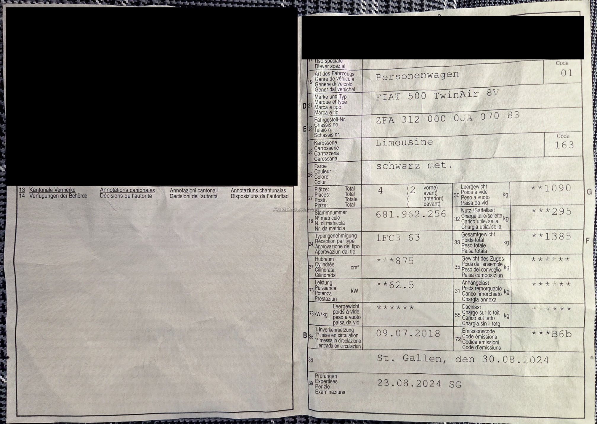 | Kommentar | Am Fahrzeug wurde keine genaue technische Prüfung durchgeführt! - sehr gepflegter Fiat 500 Cabrio - 8-fach befelgt (Profiltiefe Sommerreifen 6-7mm, Profiltiefe Winterreifen 6mm) - Service fällig - mehrere, kleinere Karrosserieschäden und Steinschläge (siehe Fotos) |