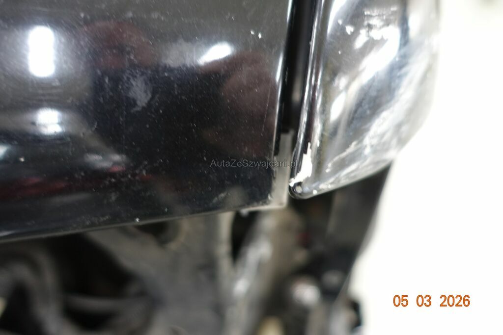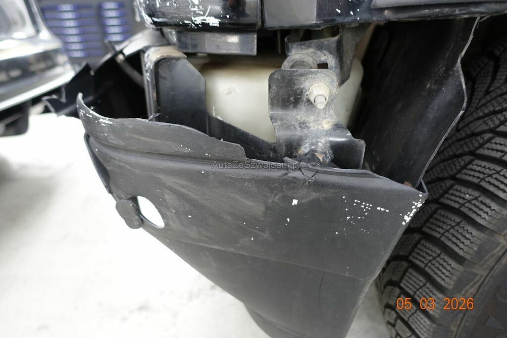 Der Scheinwerfer sowie der Blinker VL waren nicht vor Ort. Jedoch anhand des Schadenbildes, kann davon ausgegangen werden, dass diese gebrochen sind. Der Kotflügel VL ist deformiert und ist leicht an der Motorhaube angestanden. Diese ist im Kantenbereich leicht zerkratzt. Die Stossstange sowie der Nebelscheinwerfer VL sind gebrochen. Der Träger darunter ist verzogen.