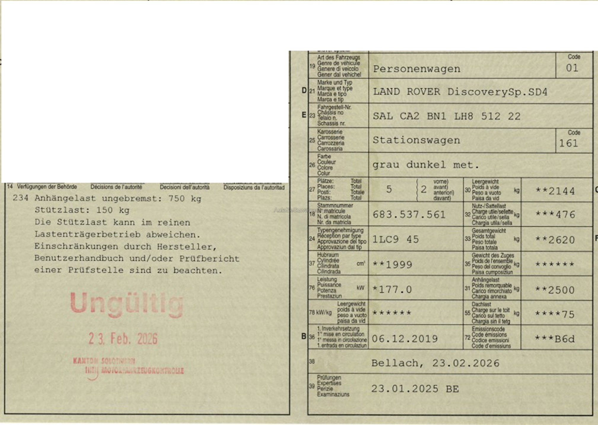 | Kommentar | Unsere Fahrzeuge wurden keiner Prüfung unterzogen, Fahrzeugkauf auf eigenes Risiko ab Platz ohne Nachwährschaft. Das Gewährleisten für Sachmängel wird weggegangen. Fahrzeugbereifung, Fahrzeugzustand und Ausstattung gemäss Bildern. |