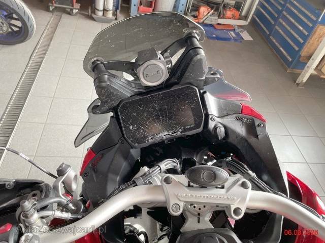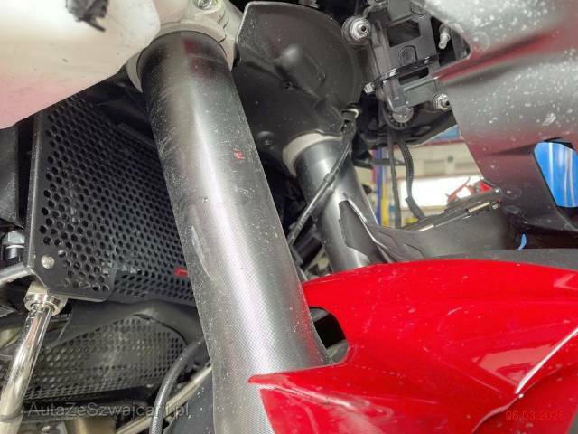 | Schadensbeschreibung | Beschreibung der Schäden: Felge vo. läuft unrund, Gabel beschädigt und Risiko Rahmen, Bremszange links zerkratzt, Lenker und div. Anbauteile beschädigt, Frontverkleidung beschädigt, Scheinwerfer gebrochen, Radarsensor beschädigt, Kühler eingedrückt, Tachoeinheit gebrochen (KM-Anzeige und Drehzahlmesser kann nicht mehr abgelesen werden), Sturzbügel zerkratzt, Sattel und Griff zerkatzt, Koffer rechts und Top-Case zerkratzt Motor läuft Zubehör wird evtl. demontiert! |