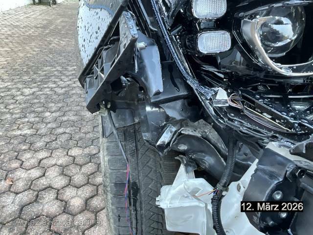 | Schadensbeschreibung | Front rechts; Motorhaube, Scheinwerfer, Kotflügel, Stossstage, Radhaus, Nebelscheinwerfer, Aufhängung, Türe vorne, Aussenspiegel, Scheibenwaschbehälter eingedrückt und zerkratzt / Vorbestandene Schäden: Gebrauchsspuren |