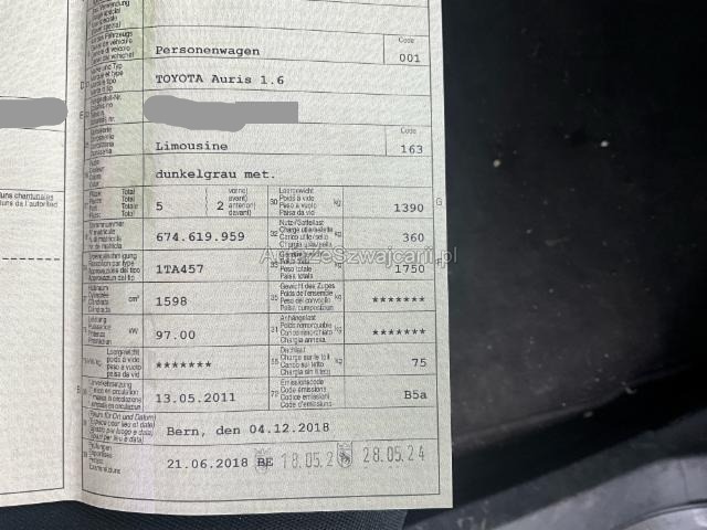 | Condition_and_Equipment | Bereifung Fahrzeug wird mit Winterräder abgegeben. --- Sonstige Schäden Div.Carrosserie Teile sind leicht beschädigt. Div. Roststellen am Fahrzeug. Lackierung matt (stumpf, beschädigt). --- Serienaustattung Airbag Fahrer und Beifahrerseite Elektronische Wegfahrsperre Elektrische Fensterheber vorne + hinten Seitenairbag Fahrer und Beifahrerseite Nebelscheinwerfer Zentralverriegelung mit Fernbedienung Höhenverstellbarer Fahrersitz manuell Lederlenkrad Mittelarmlehne vorne Lenkrad verstellbar Kopfairbag vorne und hinten Deaktivierung Beifahrerairbag Lederschaltknauf Aussenspiegel elektrisch verstellbar/ heizbar und anklappbar Audiofernbedienung am Lenkrad Stabilitätskontrolle VSC + Traktionskontrolle TRC Reserverad Servolenkung geschwindigkeitsabhängig Knieairbag Fahrer Isofix-Kindersitzbefestigung hinten Rücksitzlehnen getrennt abklappbar 60:40 Klimaanlage manuell Stahlfelgen 16" Radio/ CD Anschluss USB und AUX ABS und EBD Elektr. Bremskraftverteilung inkl. BA Keine Gewähr auf die Angaben der Serienausstattungen Sonderausstattung Tempomat Metallic- oder Mica Lackierung |