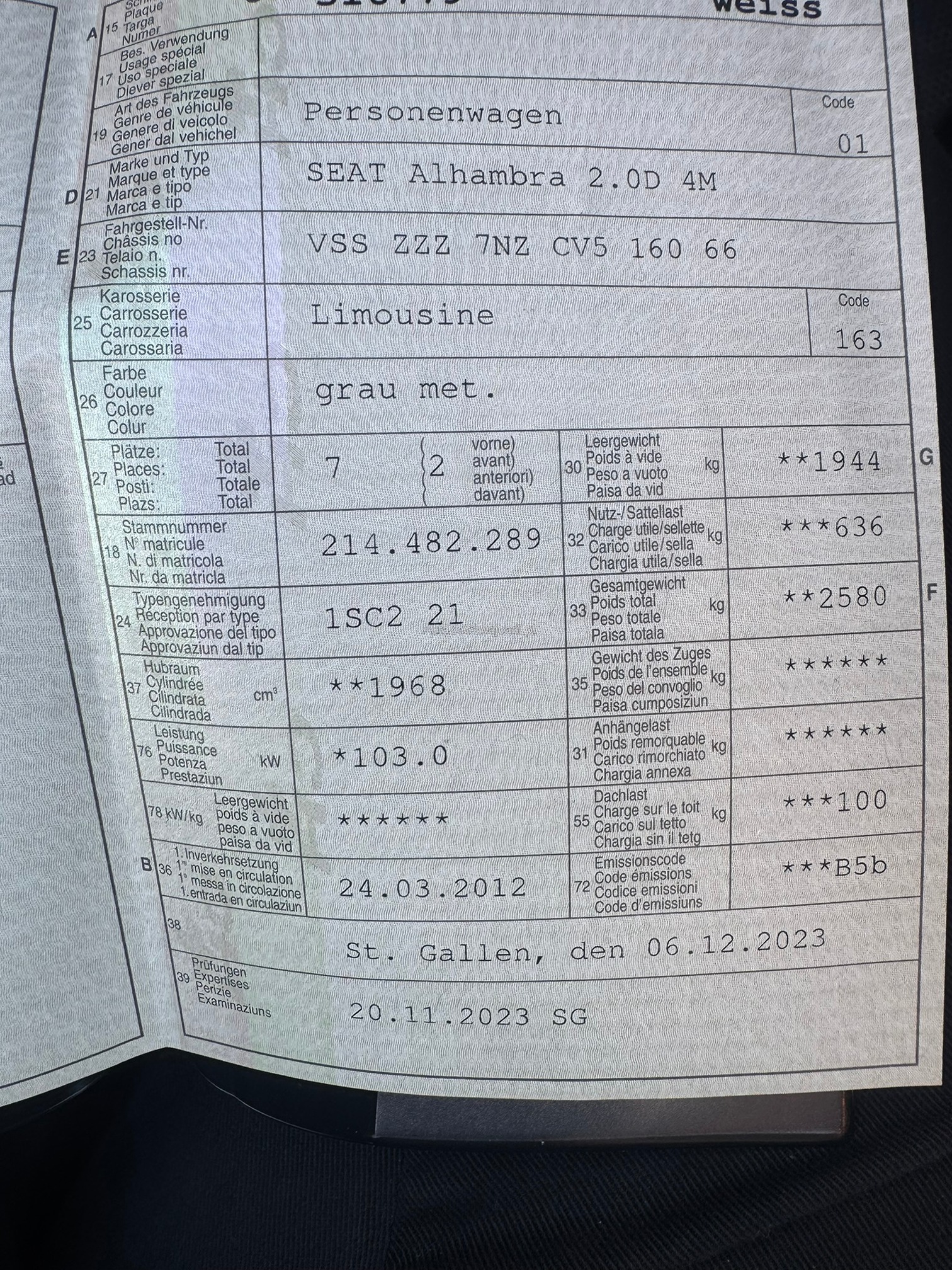 | Kommentar | Zustand gem. Bilder, man riecht den Hund im Auto. Das Fahrzeug hat ein defektes AGR-Ventil und einen vollen DPF, es ist damit zu rechnen das der DPF ersetzt werden muss oder evt. gereinigt. Wir haben die Ad-Blue-Düse ersetzt weil diese undicht war. Das Fahrzeug startet nicht, und wenn er startet ist er nicht fahrbar. Über den sonstigen technischen Zustand können wir keine Auskunft geben da die Wartungen nicht bei uns durchgeführt wurden. Zwei Winterreifen sind sicher zu ersetzen, Sommerräder sind vorhanden aber den Zustand der Sommerreifen können wir nicht beurteilen da nicht gesehen. Das Fahrzeug wird ab Platz angeboten ohne Garantie, Wandelung oder Minderung. Für eventuelle Zusatzmängel sind wir nicht verantwortlich und nicht haftbar. |