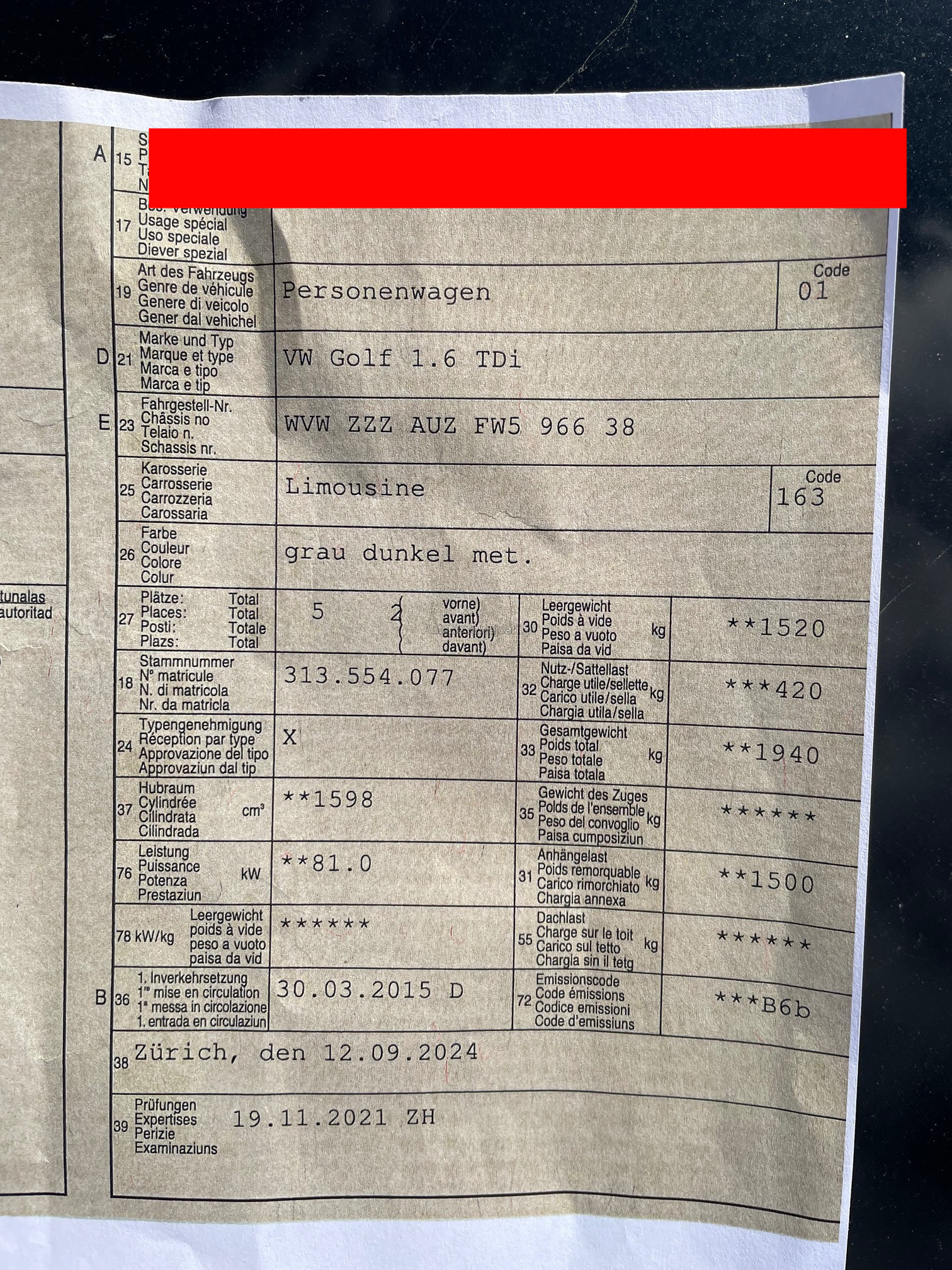 | Kommentar | Kein mechanischer Test vorhanden Keine Probefahrt |