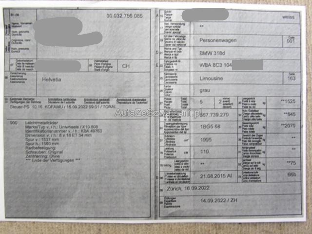 | Condition_and_Equipment | Zustand Fahrzeug ist fahrbar. Bereifung Fahrzeug wird mit Winterräder abgegeben. Schlüssel Nur ein Schlüssel vorhanden. Kategorie Das Fahrzeug wird vom Besitzer noch benutzt. Weitere wichtige Hinweise Siehe Fotos / Ohne Gewähr --- Rechts Anstoss rechts im Bereich der B-Säule. Tür vorne rechts ist eingedrückt. Weitere Beschädigungen Komplettes Navi mit Bildschirm und Bedienteil wurde gestohlen. Dachrahmen mit B-Säule rechts vom Einbruch beschädigt. Kabelstrang beschädigt. --- Serienaustattung Klimaanlage inkl. Mikrofilter Seitenairbag für Fahrer und Beifahrer Radio BMW Professional Sport-Lederlenkrad Reifendruck-Kontrollsystem RDC Durchladesystem Regensensor Nebelscheinwerfer vorne Dynamische Stabilitäts-Control DSC Servotronic Kindersitzbefestigung Isofix Fahrer und Beifahrer-Airbag Velours-Fussmatten Uni-Lackierung Multifunktions-Lenkrad Fensterheber elektrisch vorne + hinten Kopfairbags vorne + hinten Kopfstützen im Fond klappbar Dieselpartikelfilter Digital audio DAB-Tuner ABS Antiblockiersystem inklusive Bremsassistent Interieurleisten Satinsilber matt Auto Start Stopp Funktion Details siehe gültige Preisliste des Importeurs Freisprecheinrichtung mit USB-Schnittstelle Keine Gewähr auf die Angaben der Serienausstattungen BMW Service Plus 10 Jahre/ 100'000 km Sonderausstattung Navigationssystem Professional Pack Raucher Pack Licht Park Distance Control PDC vorn und hinten Klimaautomat 2-Zonen inkl. Mikrofilter Bereifung mit Notlaufeigenschaft Speed Limit Info Instrumentenkombination/ erweitert ConnectedDrive Services Real Time Traffic Information Remote Services |
