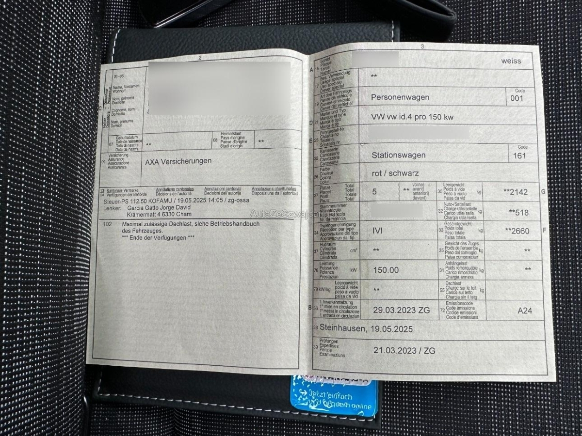 | Fahrzeugausweis | Vorhanden |