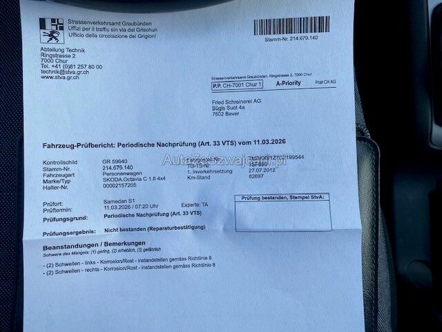 | Information | MFK Prüfung nicht bestanden. Rost an den Schweller. div. Gebrauchsspuren. Innenraum gepflegt |
