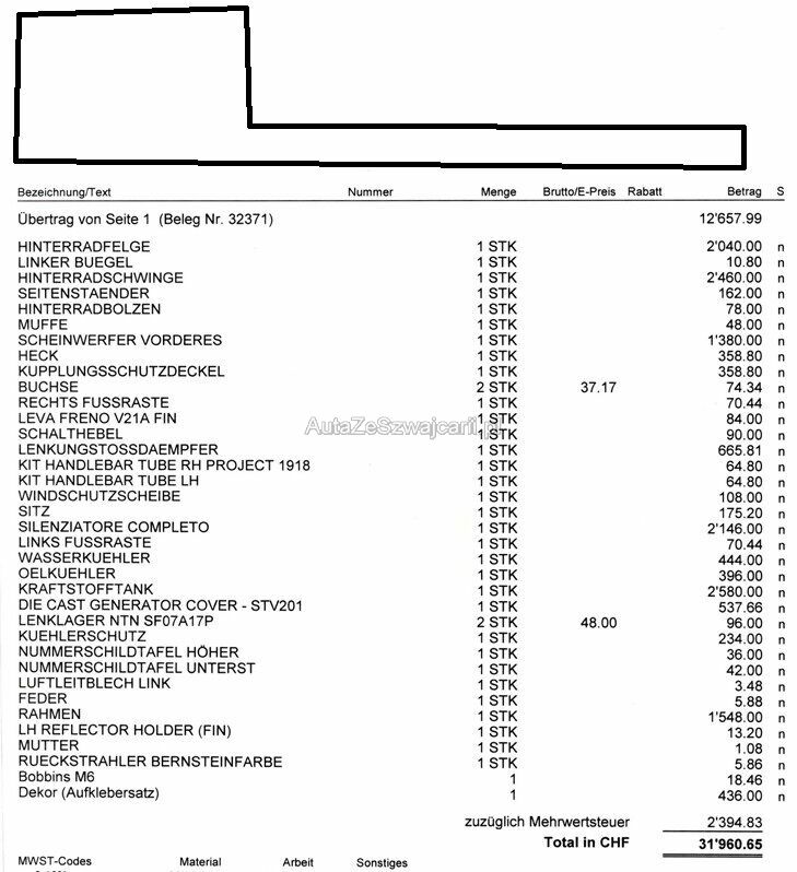 | Information | -Risiko Rahmen -Risiko Motor (startet nicht, Ursache unbekannt) -Ein Schlüssel -Motorrad rundum beschädigt. -Bitte Kalkulation Reparateur beachten! |