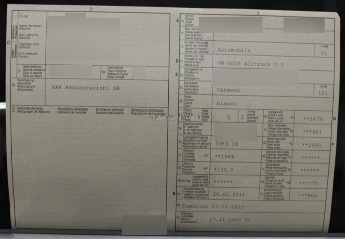 | Fahrzeugausweis | Vorhanden |