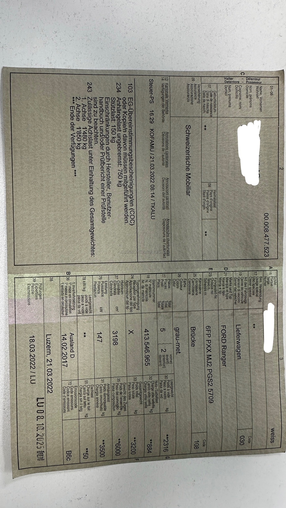 | Kommentar | Es wurde kein Werkstatttest durchgeführt. Diverse Fehlermeldungen (siehe Bilder) Auto wird täglich gefahren. |