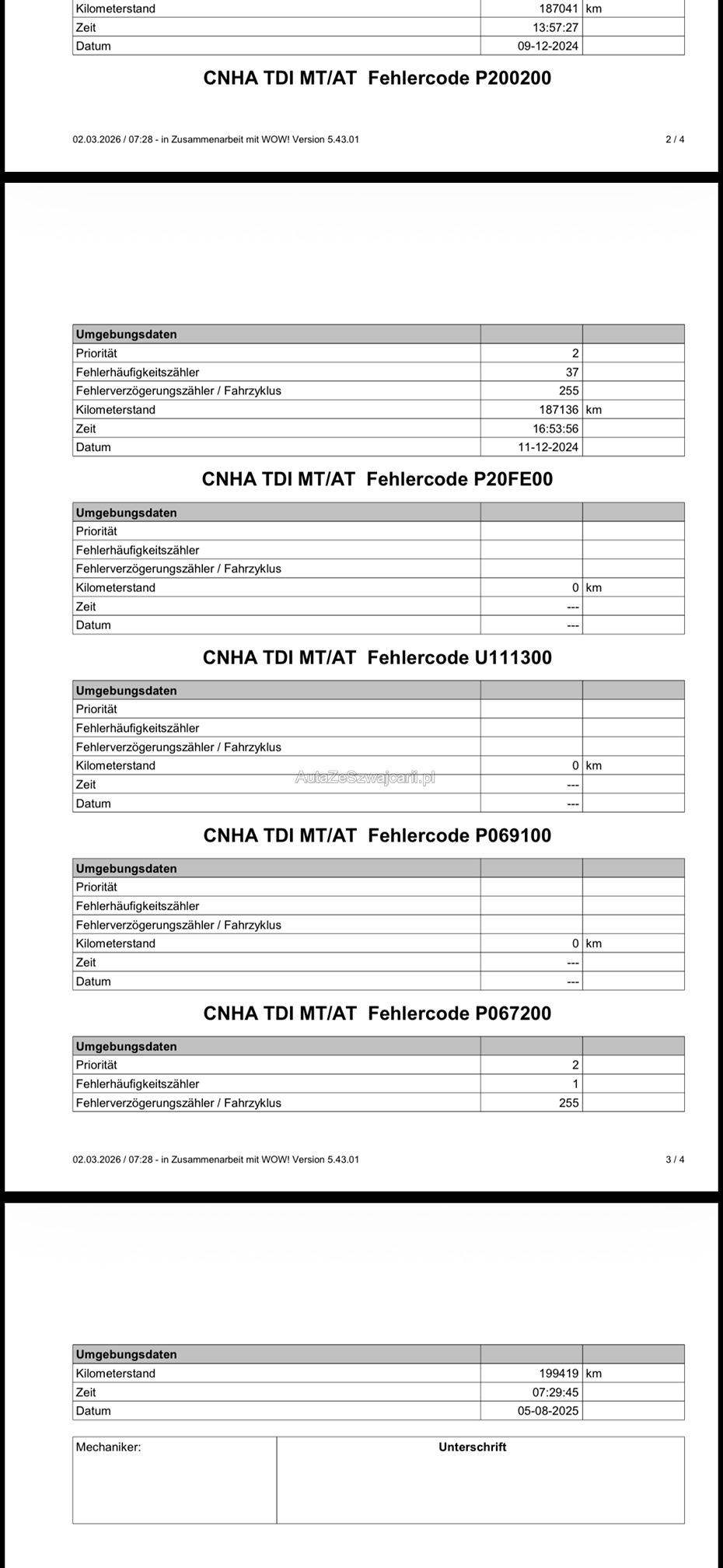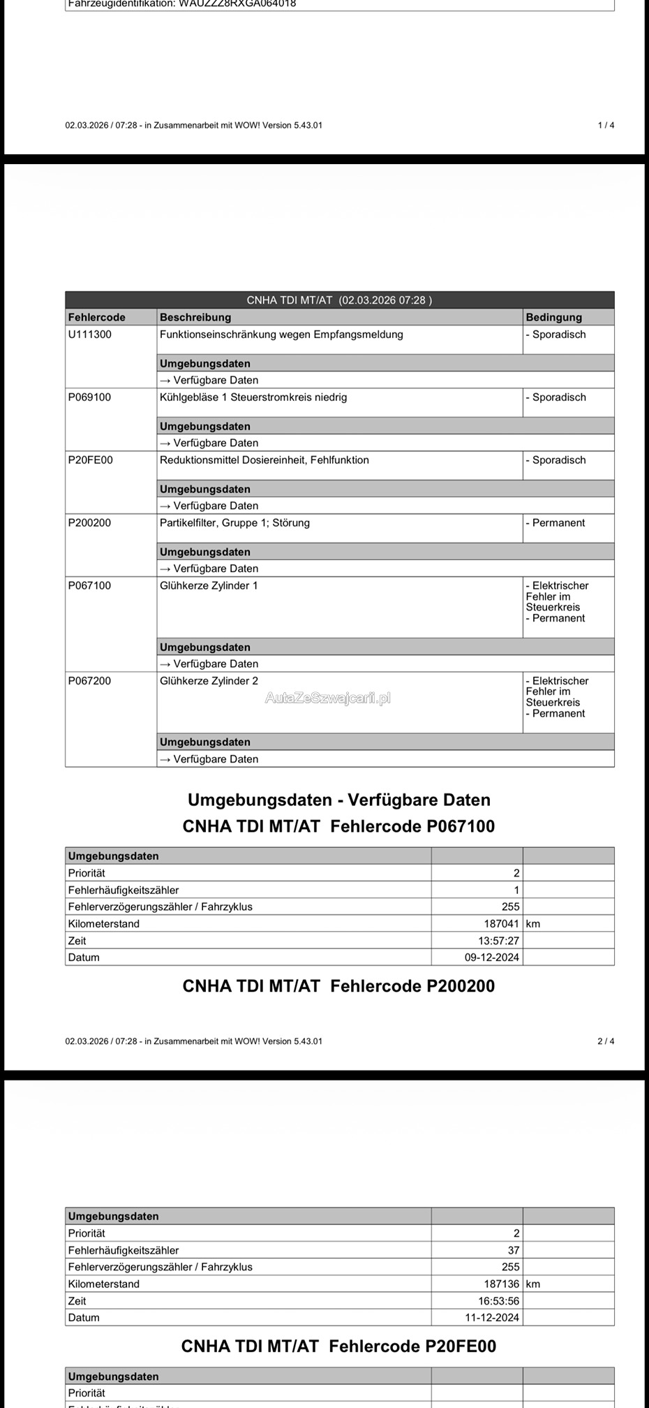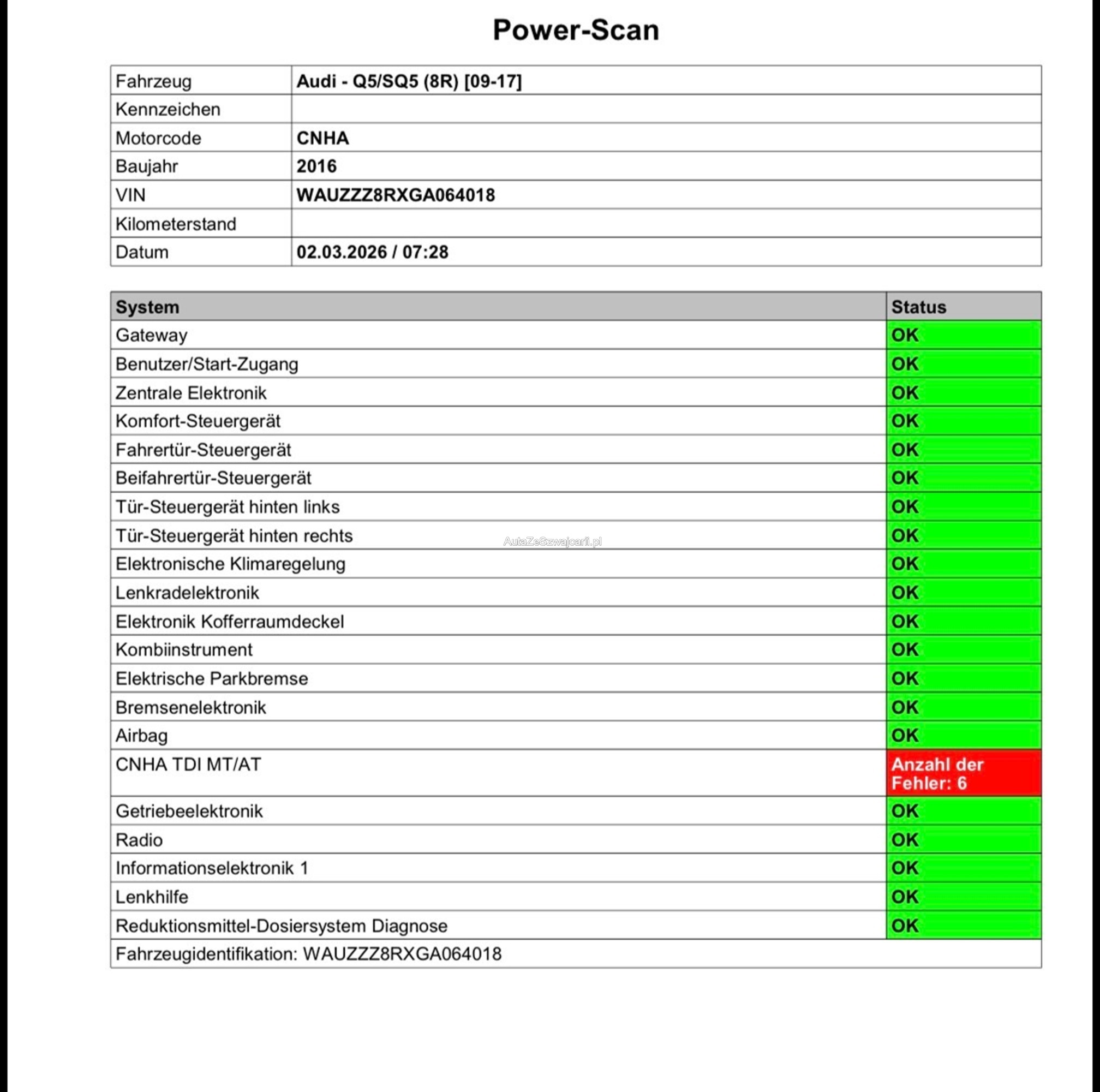 | Kommentar | Es wurde kein Werkstatttest von uns durchgeführt. Bilder und Diagnosebericht stammen vom Kunden. |