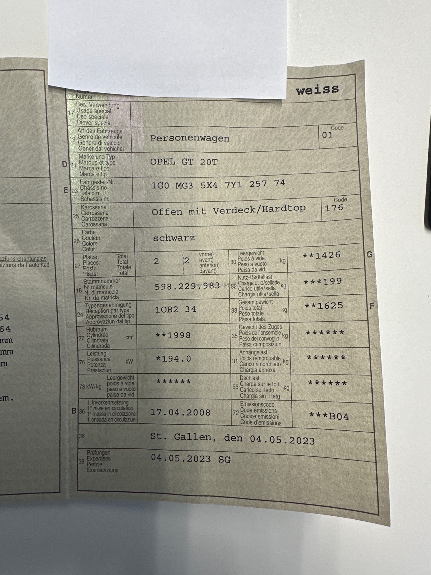 OPEL GT 20T