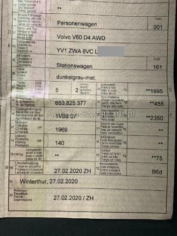 | Condition_and_Equipment | Zustand Fahrzeug ist rollbar. Bereifung Fahrzeug wird mit Winterräder abgegeben. --- Serienaustattung Airbag Fahrer und Beifahrerseite Fahrersitz elektrisch verstellbar Elektrische Fensterheber vorne + hinten Aussenspiegel elektrisch verstellbar und heizbar Tempomat Sportfahrwerk Zentralverriegelung mit Fernbedienung Innenspiegel automatisch abblendbar SIPS Kopf-/ Schulterairbag Regensensor ABS und EBV Elektr. Bremskraftverteilung Lederschalthebel Sport-Lederlenkrad 3-Speichen Antibeschlagssensor Bremsassistent EBA 12 V Steckdose im Kofferraum Zwei Zonen-Klimaautomatik Aussenspiegel und Innenspiegel automatisch abblendend Isofix-Vorbereitung Rücksitze aussen Dachreling schwarz Gepäck-Sicherungsnetz Aussenspiegel elektrisch anklappbar inkl. Bodenleuchten IDIS Fahrerinformationssystem WHIPS Schleudertrauma-Schutzsystem Servolenkung geschwindigkeitsabhängig SIPS Seitenairbag Fahrer und Beifahrerseite Dieselpartikelfilter Vordersitze höhenverstellbar Geschwindigkeitsbegrenzer Berganfahrhilfe Aktivkohlefilter mit automatischer Umluftschaltung Mittelarmlehne v mit Getränkehalter/ Staufach Einparkhilfe hinten DAC Driver Alert Conrol/ Assistenzsystem Heckklappe automatisches öffnen/ schliessen Reifendruck-Sensoren TPMS Stop + Start System Spurhalteassistent LKA LED Tagfahrlicht Rücksitze umklappbar 60/40 Bluetooth Freisprecheinrichtung Reifendichtmittel mit Kompressor Keine Gewähr auf die Angaben der Serienausstattungen Keyless Start Leichtmetallräder 18" 5-Doppelspeichen DAB+ Digital Audio Broadcast Multifunktion für Lenkrad Digitale Instrumentierung Pack Innenraumbeleuchtung Lendenwirbelstützen elektr. für Vordersitze InfoTS Sensus Connect mit High Performance Sound Navigationssystem Sensus Connect VSP Volvo Swiss Premium Verkehrsschild-Erkennungssystem City Safety inkl. Kreuzungsbremsassistent Volvo On Call VOC inkl. WiFi Hotspot Drive-Mode Dekorausstattung Metal Mesh LED-Scheinwerfer mit Fernlichtassistent Apple Car Play/ Android Auto Dachhimmel Charcoal Sportsitze in Textil/ Leder Nappa Netztasche an Tunnelkonsole ESC Fahrdynamikregelung Beinauflagen und Lendenwirbelstütze elektrisch einstellbar Sonderausstattung Metallic-Lackierung Kopfstützen hinten elektrisch umklappbar Elektrische Kindersicherung LED-Nebelscheinwerfer InfoTS Sensus Connect mit Premium Sound Pack Park Assist Leichtmetallräder 19" 5-Dreifach-Speichen Pack Light |
