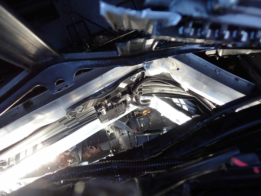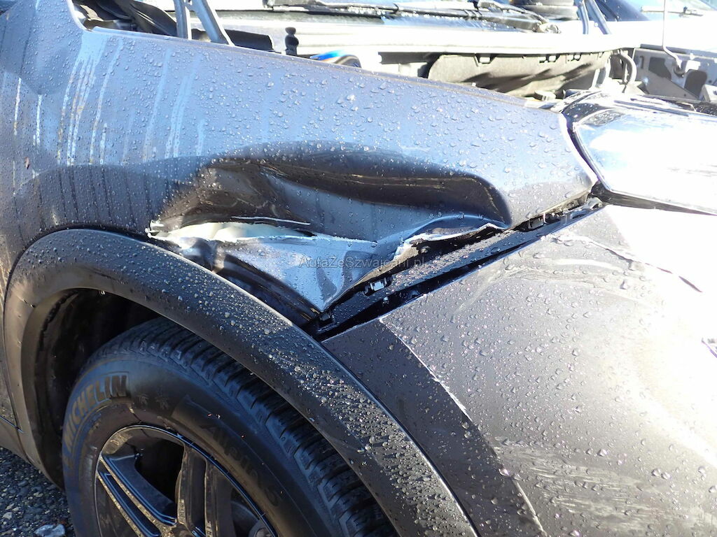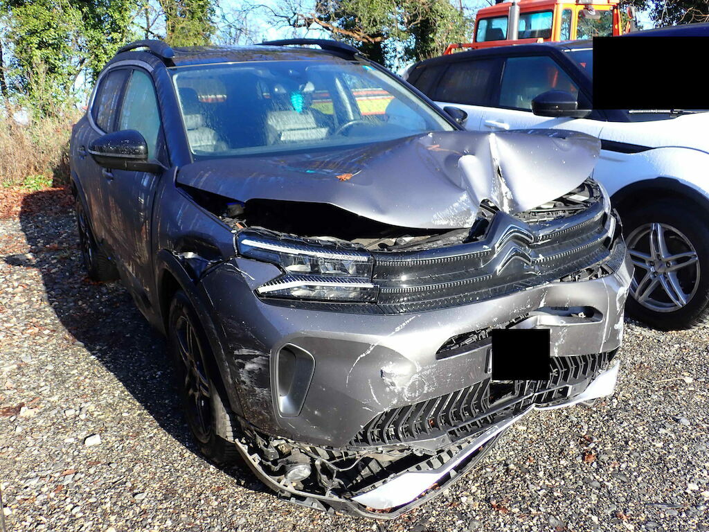 Pare-chocs Av, calandre, renfort, phares, radar, radiateurs, filtre à air, longerons, capot, aile Av, 2 portes G, jantes AvG, prétentionneurs de ceintures