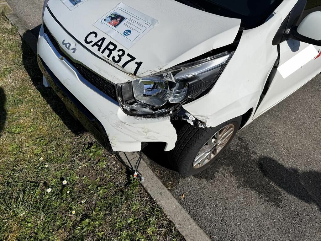 Bei der Kollision wurde die Front im Bereich der linken Seite stark eingedrückt. Die Haube, Träger und Kotflügel wurden deformiert. Der Stossfänger ist mehrfach gebrochen und Anbauteile wurden beschädigt. Zusätzlich haben alle Airbags und Gurtstraffer ausgelöst.