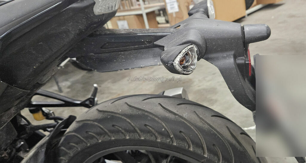 Rückspiegel re. und li., Lenkergewicht re. + li., Bremshebel VR, Kupplungshebel, Lenker, Motorverkleidung VR, Gabelholmen VR, Seitenverkleidung VR + VL, Kopfverschalung, Schutzblech vorne, Schalthebel und Fussraster, Raster HL, Blinker HL, Heck nach links verschoben, Verkleidung am Tank link, Auspuffendtopf, Fussraster VR, ...