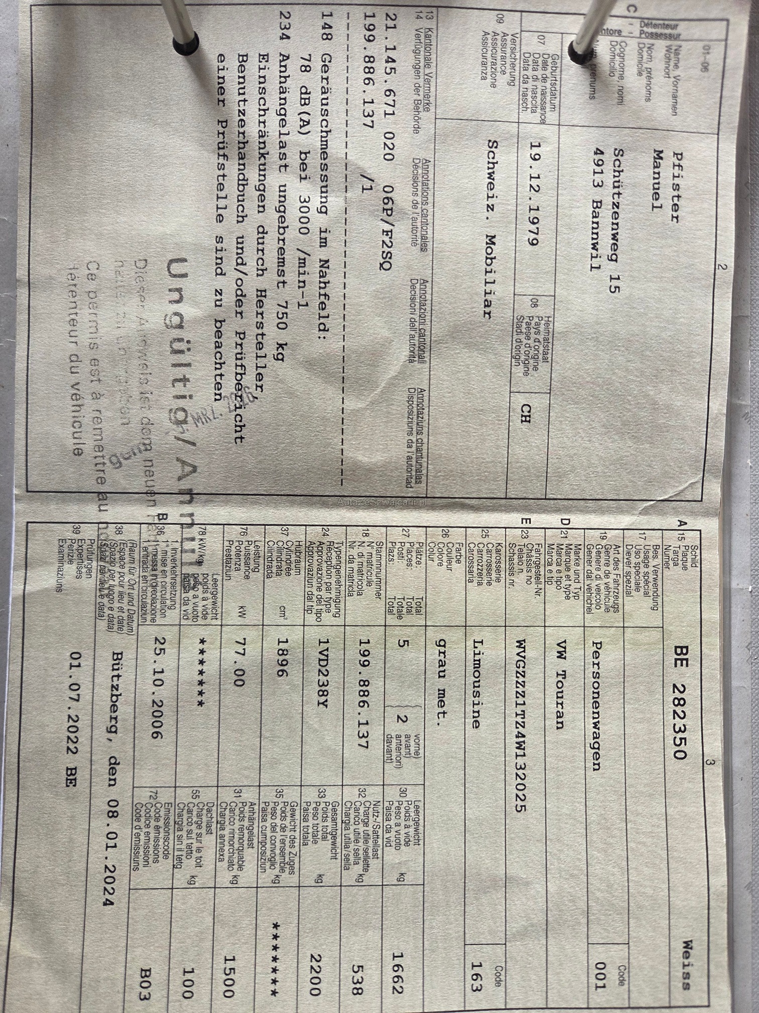 | Kommentar | Kunde musste manchmal Kühlmittel nachfüllen. Anhängelast ist im Fahrzeugausweis eingetragen aber keine Anhängekupplung montiert!! |