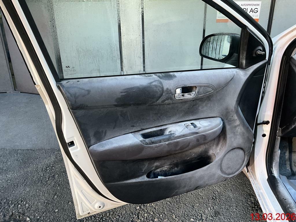 | Schadensbeschreibung | Beschreibung der Schäden: Brand im Innenraum. Kabelstrang beschädigt. Mittelkonsole und Bodenbelag geschmolzen. Ganzer Innenraum voller Löschpulver. Vorbestandene Schäden: Seite rechts: Spiegel Streifspuren. Vorne mitte: St.St.Vo unten gebrochen. Motorhaube Steinschläge. Hinten mitte: St.St.Hi gebrochen. Das Fahrzeug weist dem Alter und der Laufleistung entsprechende Gebrauchsspuren und Kratzer auf. |
