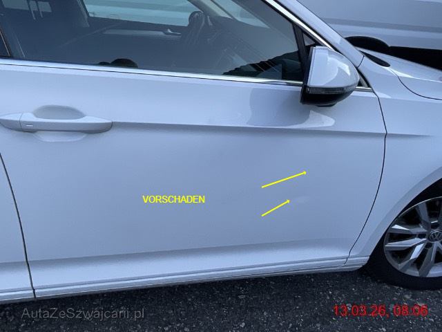 | Schadensbeschreibung | Front links: Kotflügel links eingedrückt und zerkratzt, Scheinwerfer beschädigt, Stossstange vorne gebrochen, Kühlergitter gebrochen, Felge zerkratzt - Aufzählung nicht abschliessend / Vorbestandene Schäden: Seite rechts: Türe vorne Delle / Zahnriemen 03.2025 ersetzt |