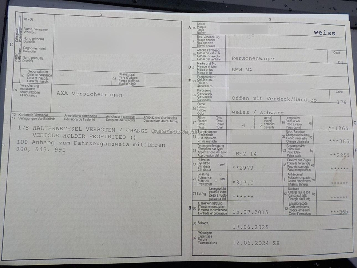 | Fahrzeugausweis | Vorhanden |