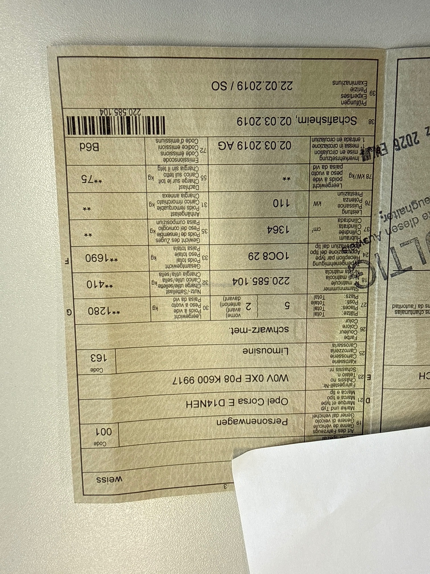 OPEL Corsa E D14NEH