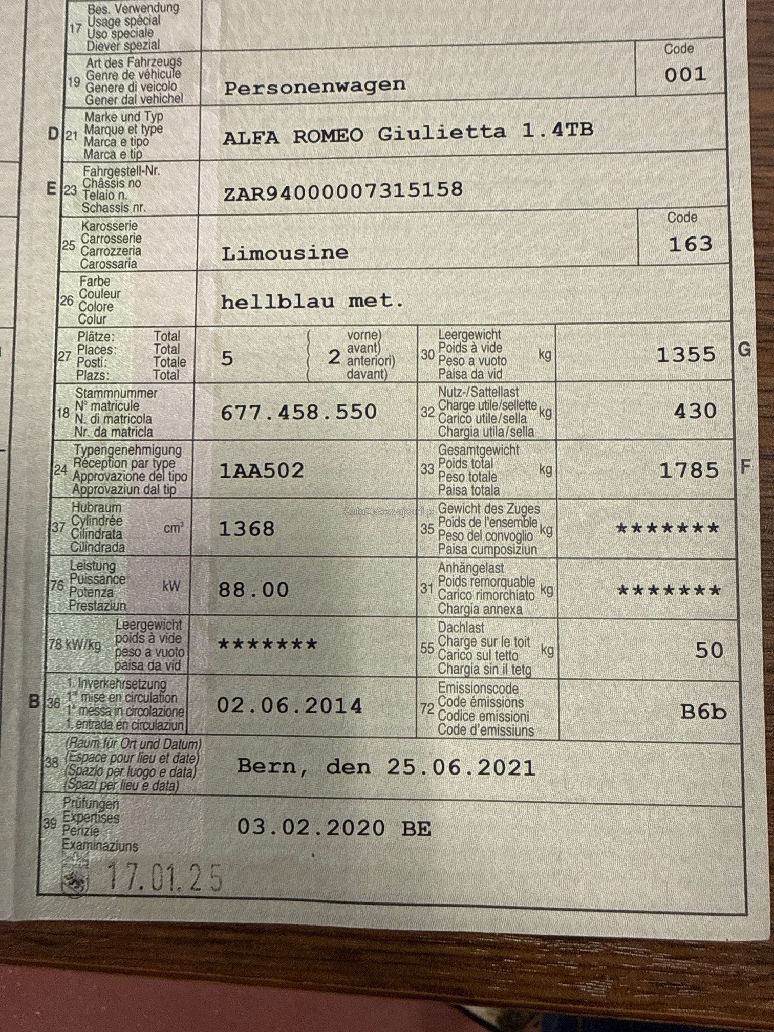 | Zahnriemen gewechselt | Yes |