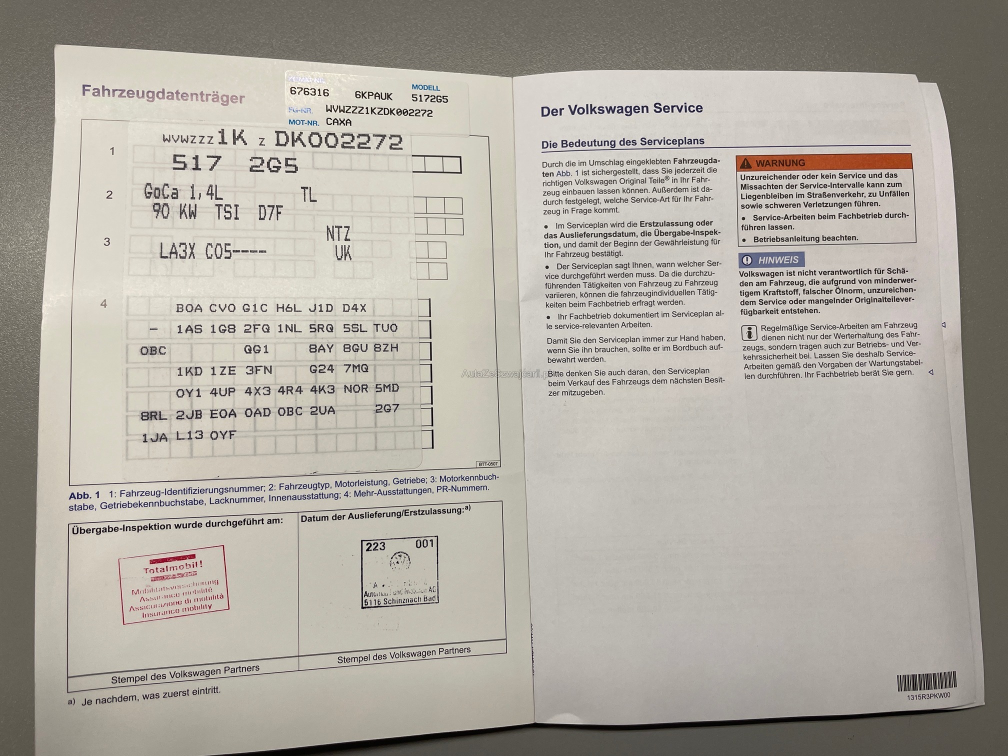 | VIN | WVWXXX |